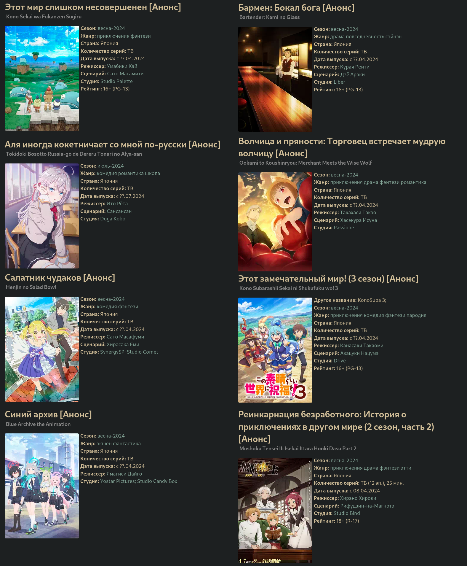 Еще онгоинги: