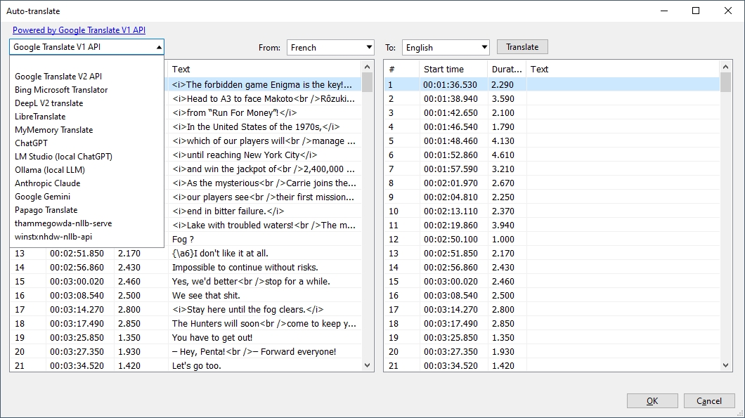 Ашалеть, это так легко было? Еще и столько выборов чем переводить кроме гугл транслейта Я думал мне придется вручную с французского в английский переводить, а тут программа делает все одним кликом за тебя