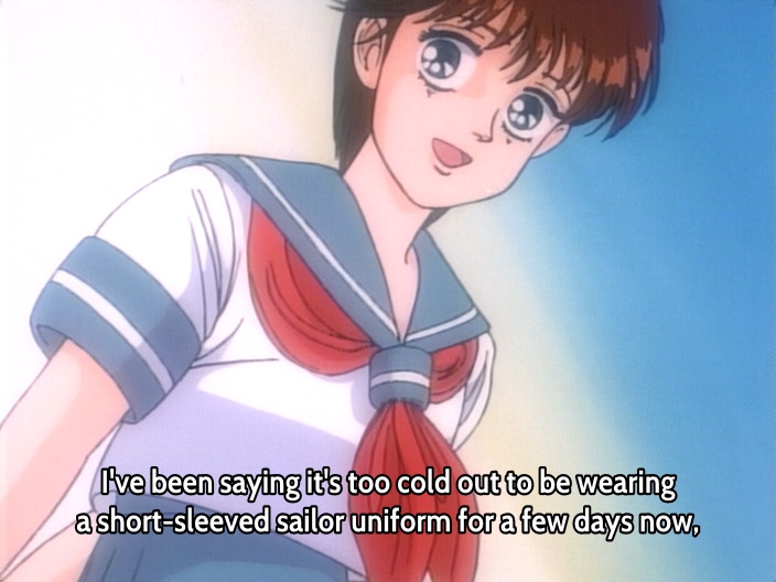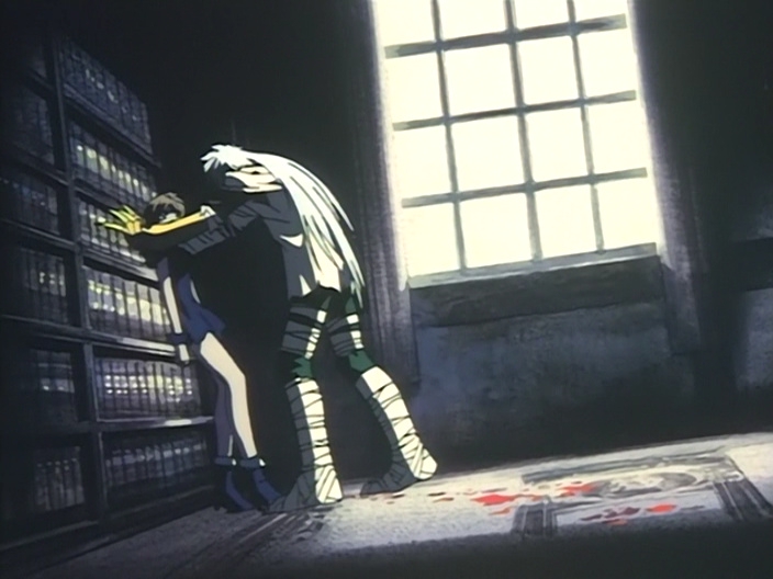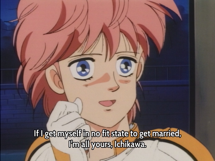 Неплохая овашка, вроде и ничего прямо выдающегося в плане анимации, но смотрится интересно за счет компетентной режиссуры, да и арт с чардизом приятный, опять же у меня в сердечке есть специальное место для махоседзь(ну, типа), раскрывающих объятья врагу. Собственно из за режиссера она мне в поле зрения и попала - с одним аноном на форче у нас вышел небольшой спор о сайлент мебиусе, где он утверждал, что мои попытки увидеть в этом зарождение шафтовского стиля, влияние Икухары и прочее - притянуты и на самом деле это все черты эпохи и стиля главного режиссера, приводя в пример как раз этот его более ранний тайтл. Я вижу те черты и особенности, которые он имел ввиду, и видел их в мёбиусе, но это не те о которых я говорил, так что все еще настаиваю на своем.