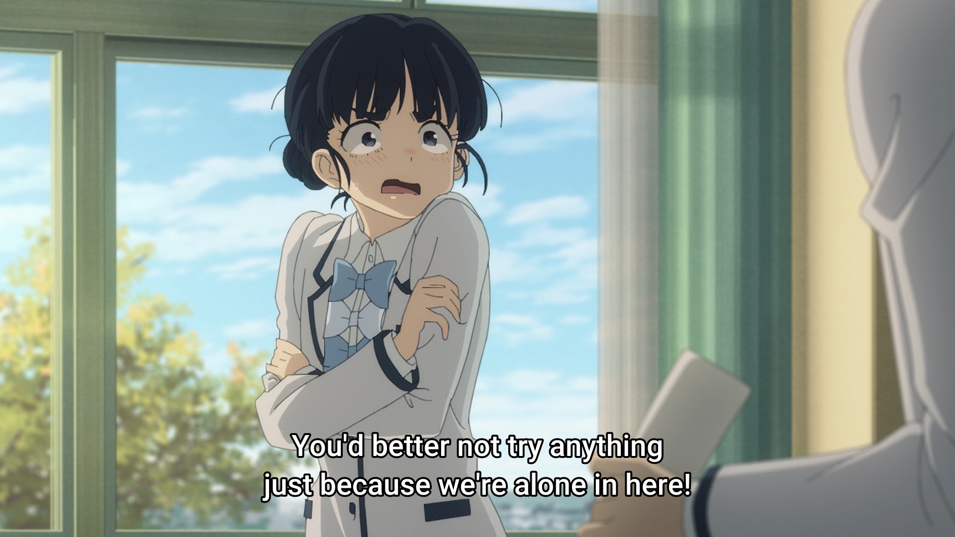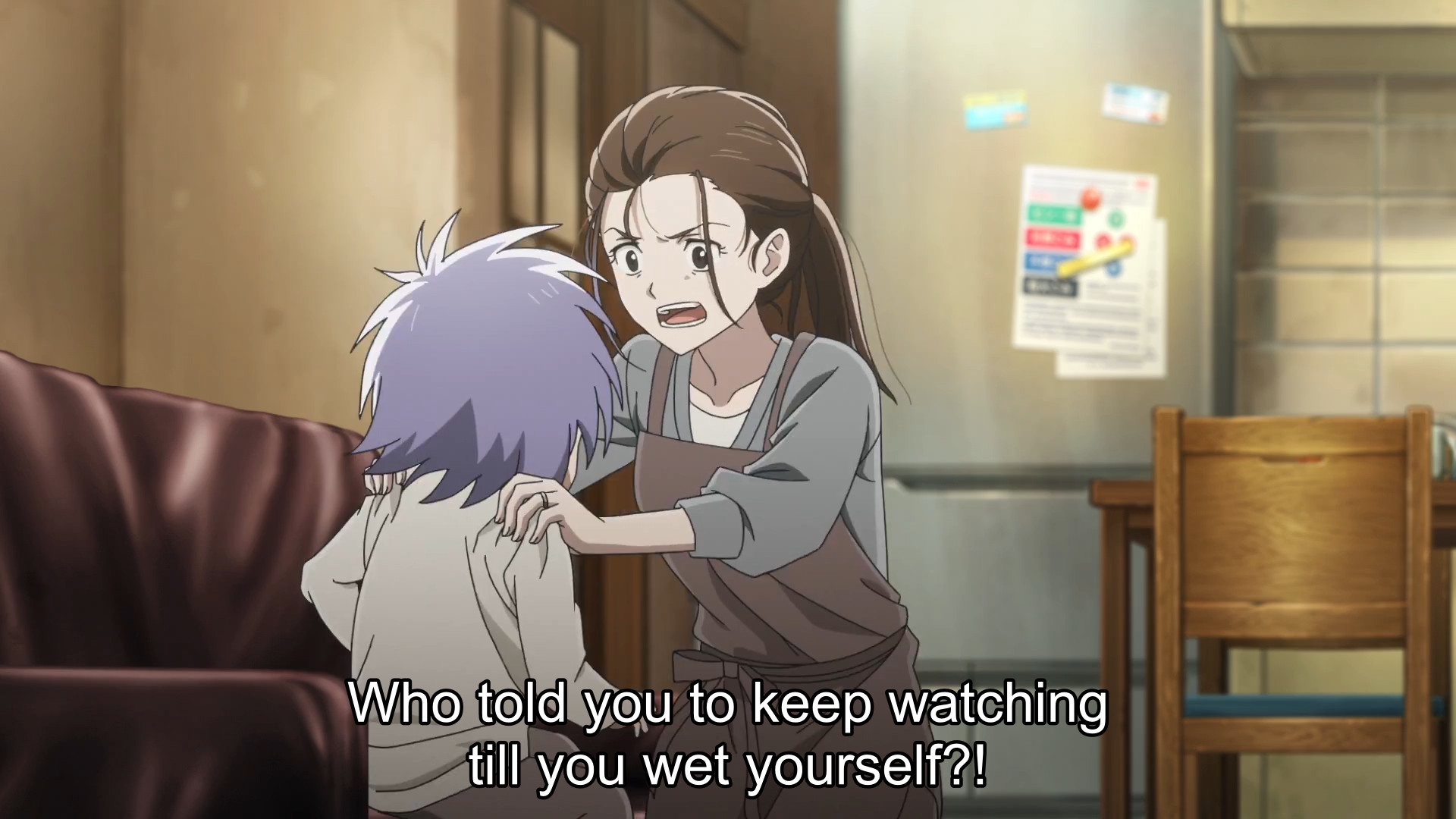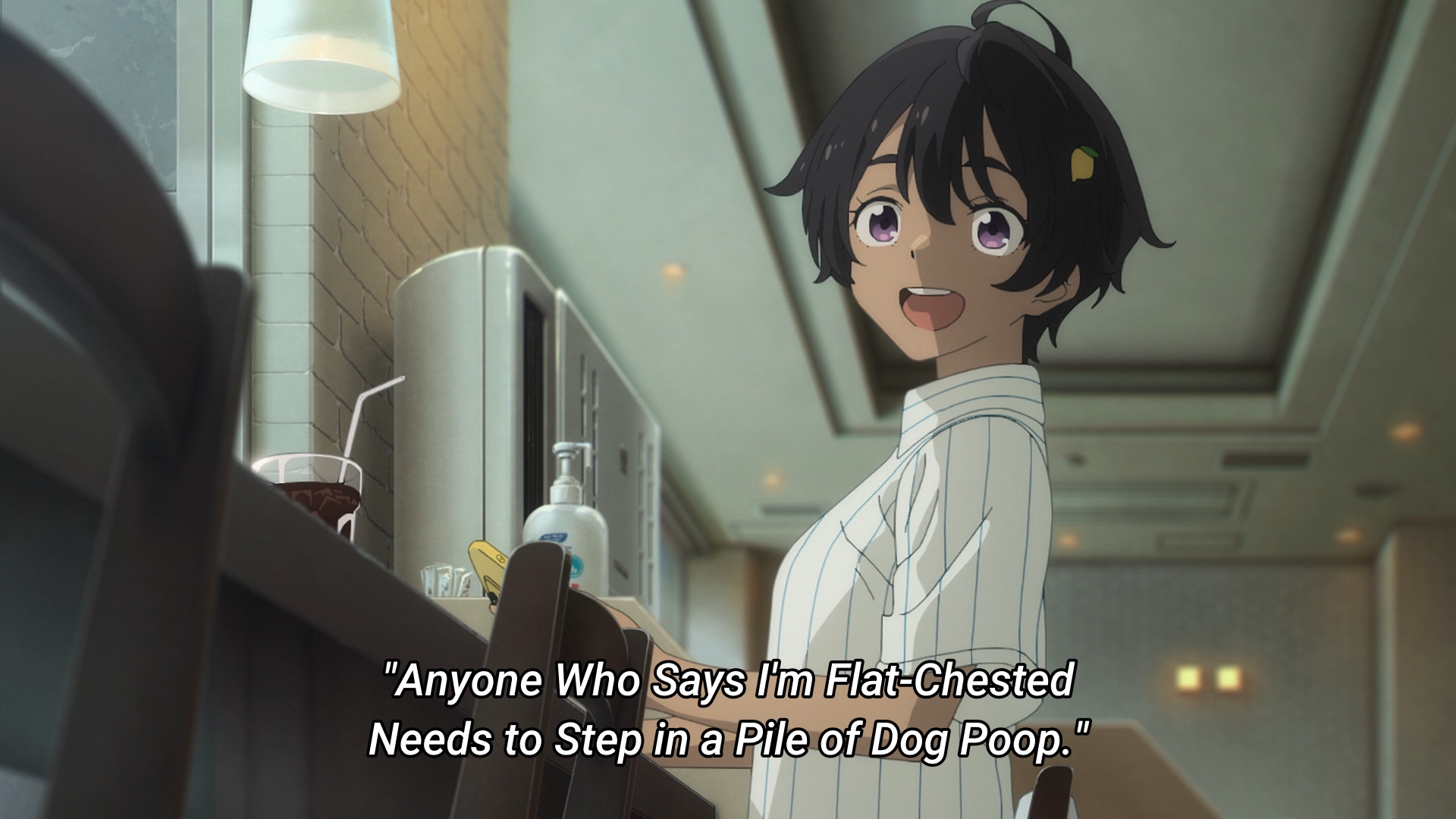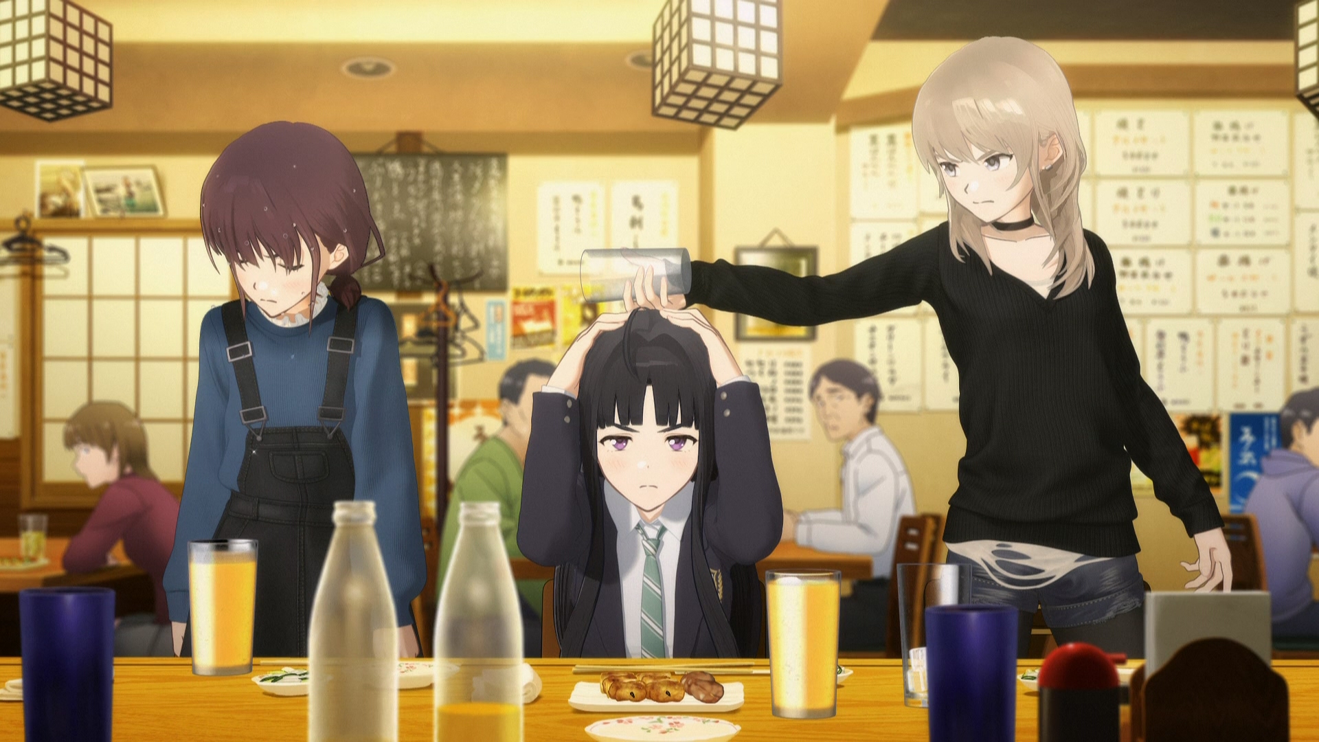 Вообще, походу здесь повторяется ситуация с Сасами-сан и Безбожным воскресеньем, так как на четвертой серии анимцо по факту закончилось, ну или, во всяком случае, там была очевидная кульминация, за которой должен был последовать логичный финал... Но нет, все как-то спустили на тормозах, и действо катится дальше, но выглядит оно теперь как высасывание истории из пальца, с очевидно упавшим градусом... всего.