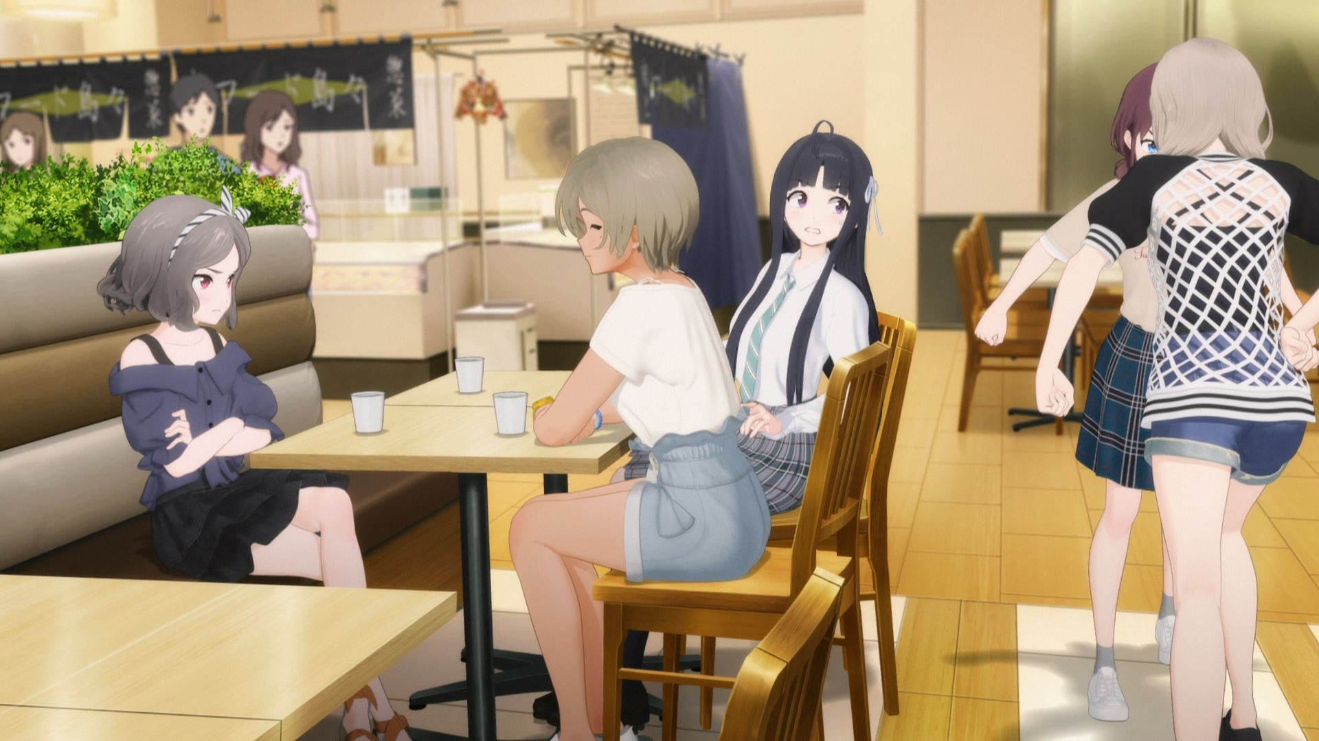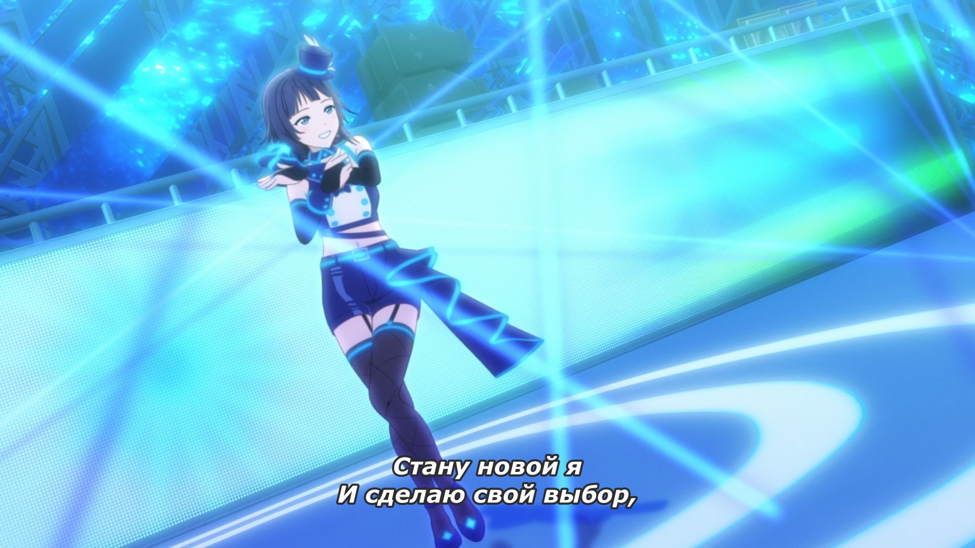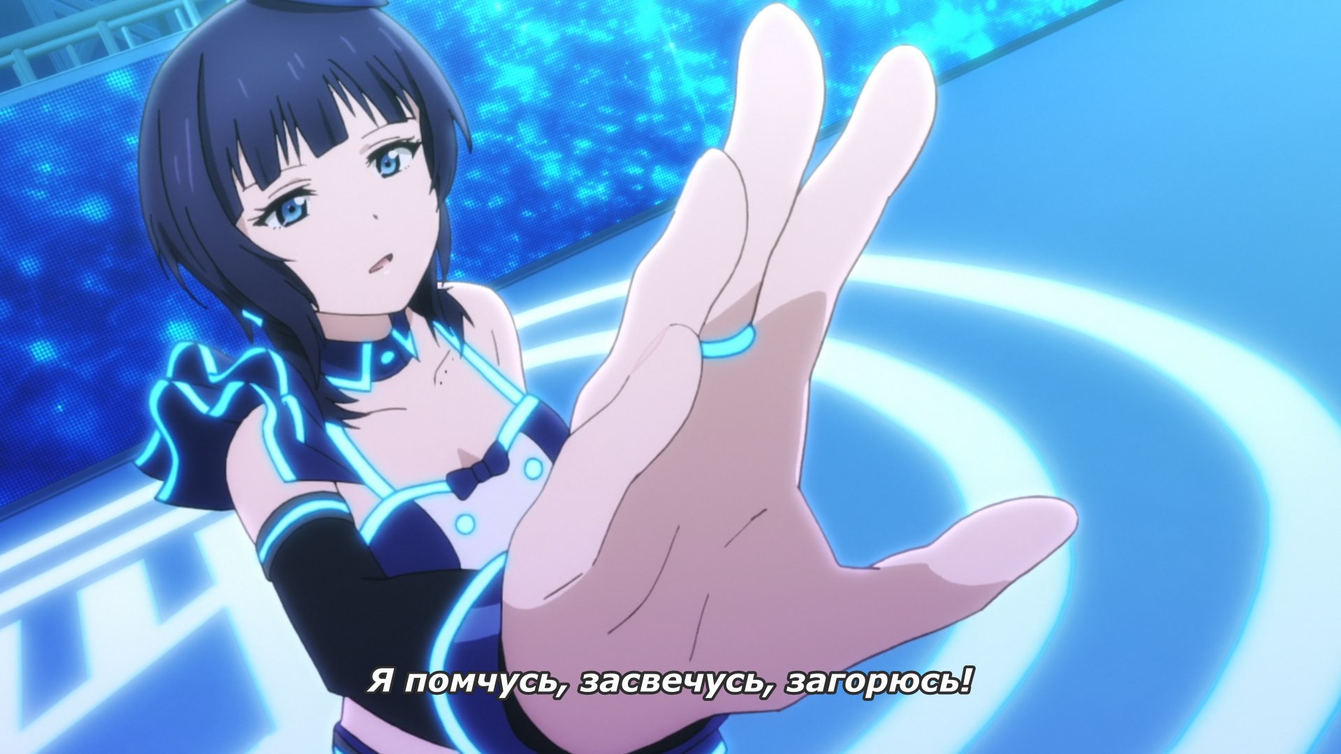 Вообще выступления они нехило так прокачали, в первом рабурайве на таком уровне были только клипцы, а в основном там всратенькие 3д-болванчики дергано потрясывали тощими жопками. Но по сравнению со вторым составом прогресс заметен невооруженным взглядом, особенно в плане девочек. Ту же Карин можно без проблем было бы впихнуть в изначальную банду, к Нозомичу и Нико-ни, и она б там точно не затерялась. Песни разве что традиционно для франшизы ниочемные.