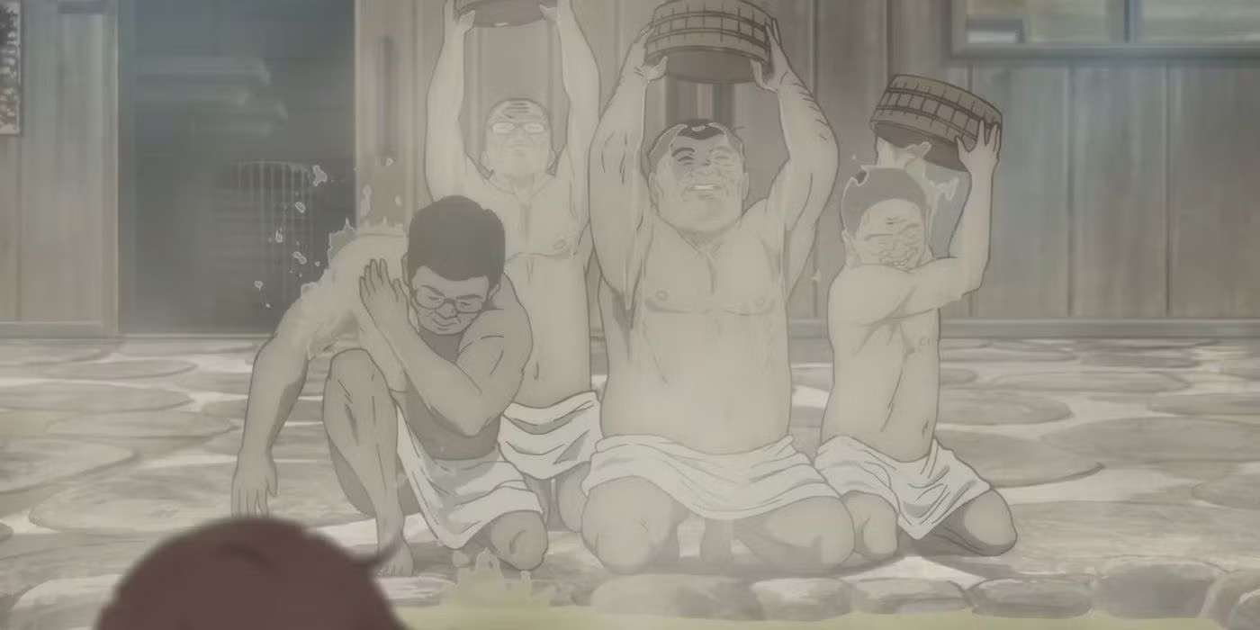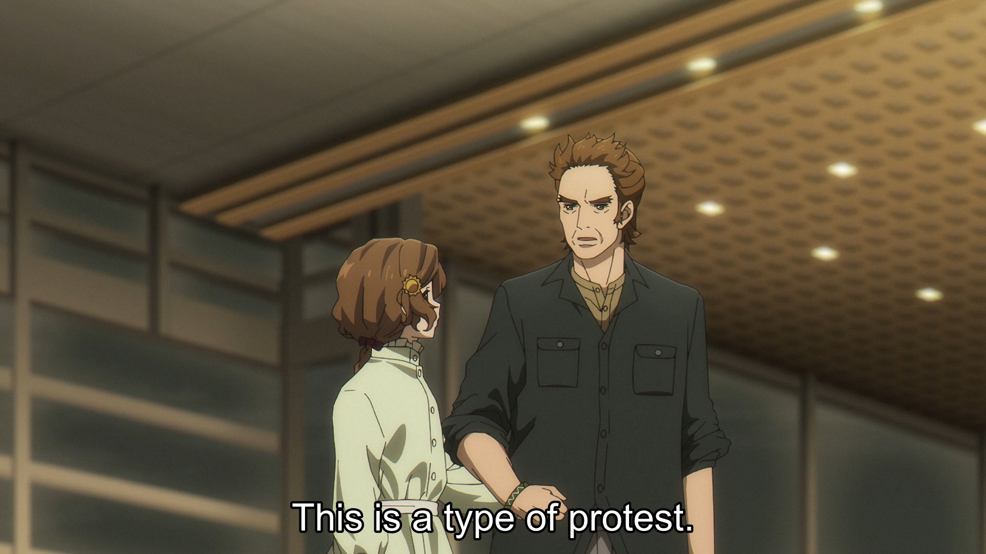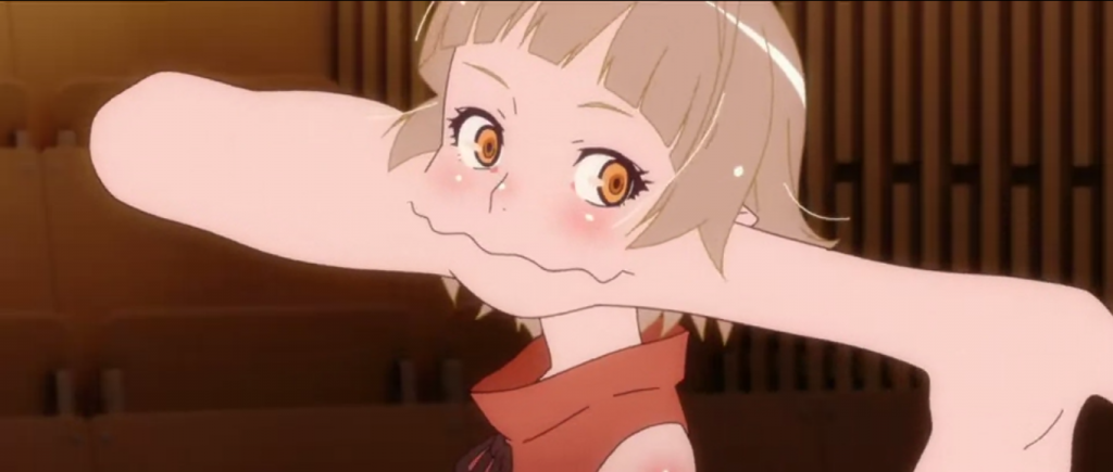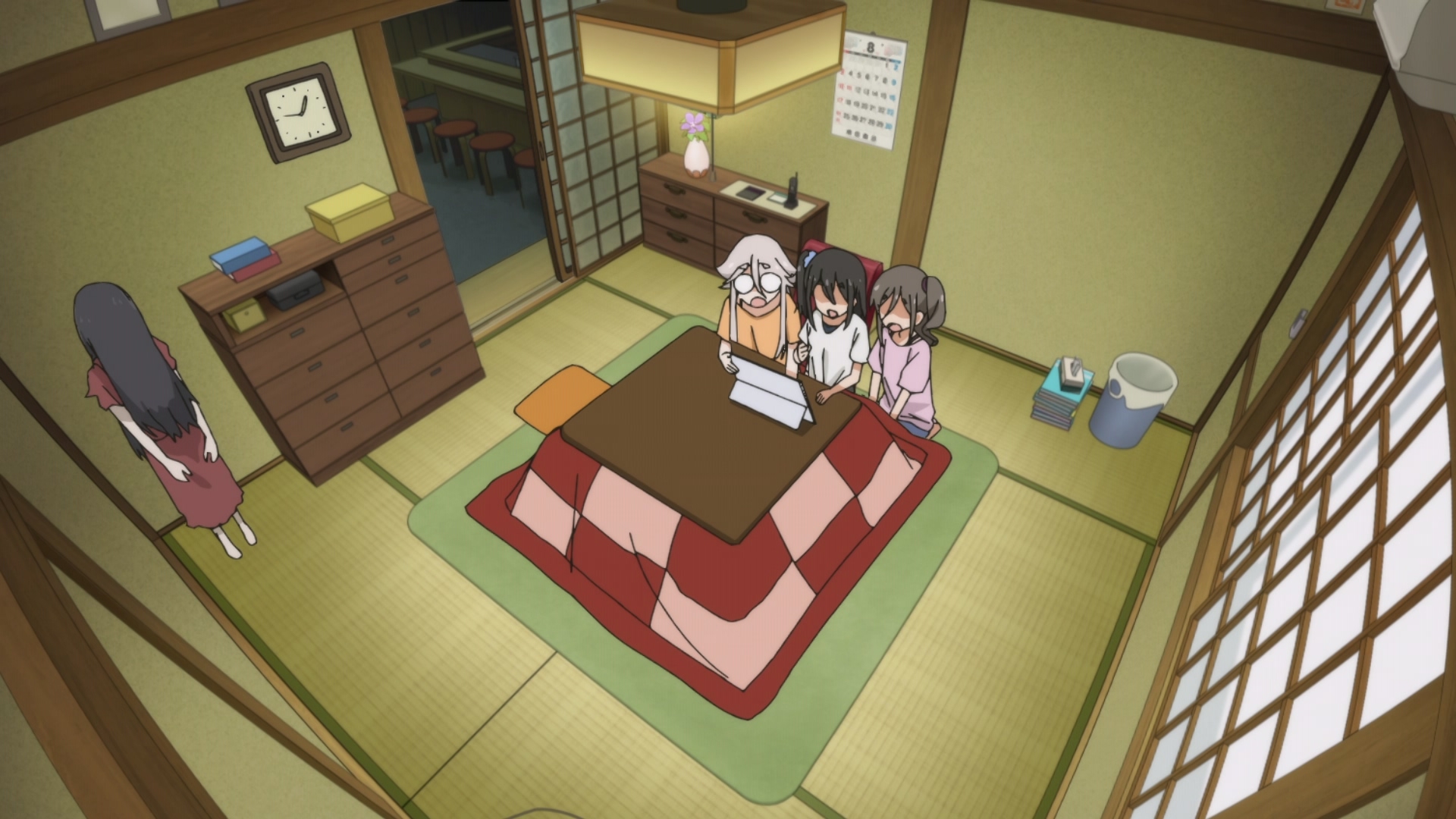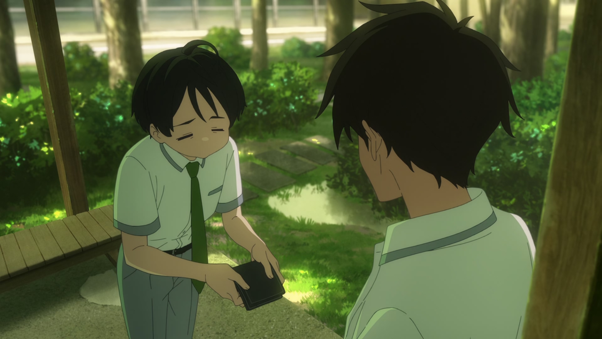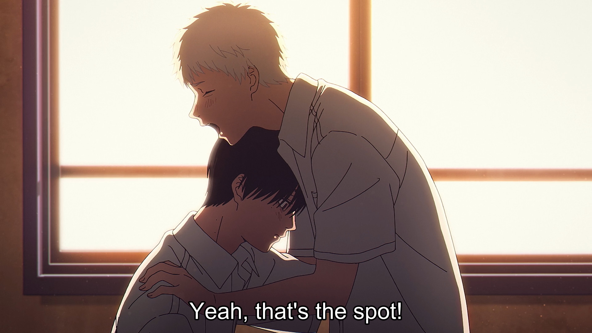 Отличный эпизод, напомнил тот один эпизод третьего, кажется, сезона Яма но сусуме - не сюжетом, а тем что тут тоже такой очень заметный сдвиг в анимации: чардиз более свободный и вне модели, анимация деформированная - и это все в хорошем смысле, если что. Короче это такой "эпизод одного аниматора"(ну не совсем буквально) - где он и раскадровщик, и режиссер, и режиссер анимации, и основной аниматор. Ну и сюжет тоже прикольный, каждая половина по своему.