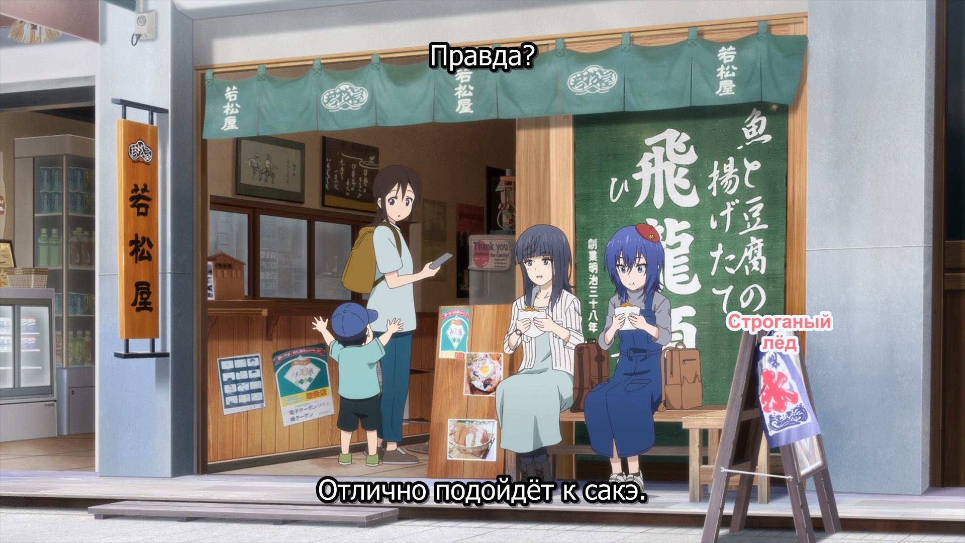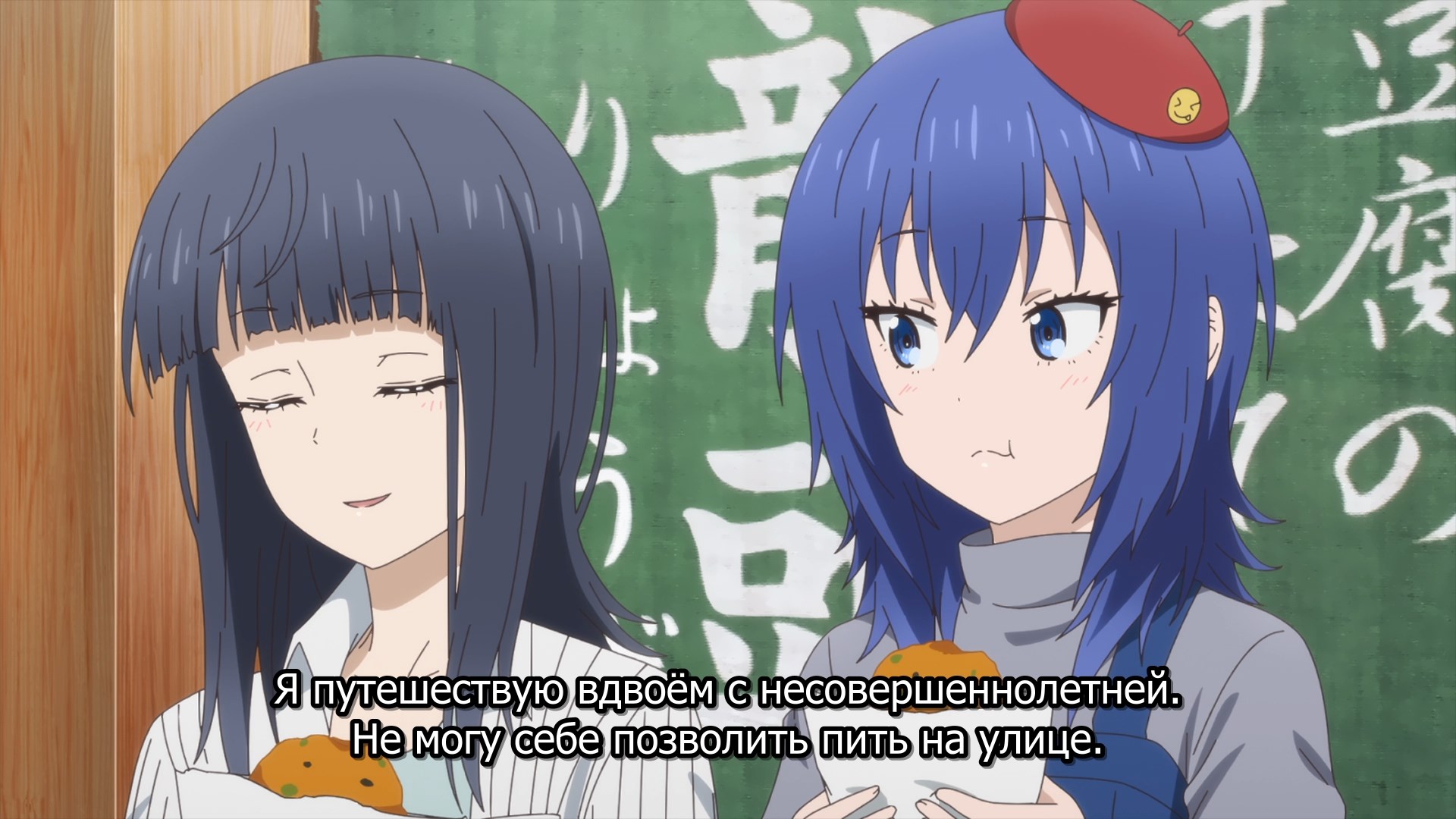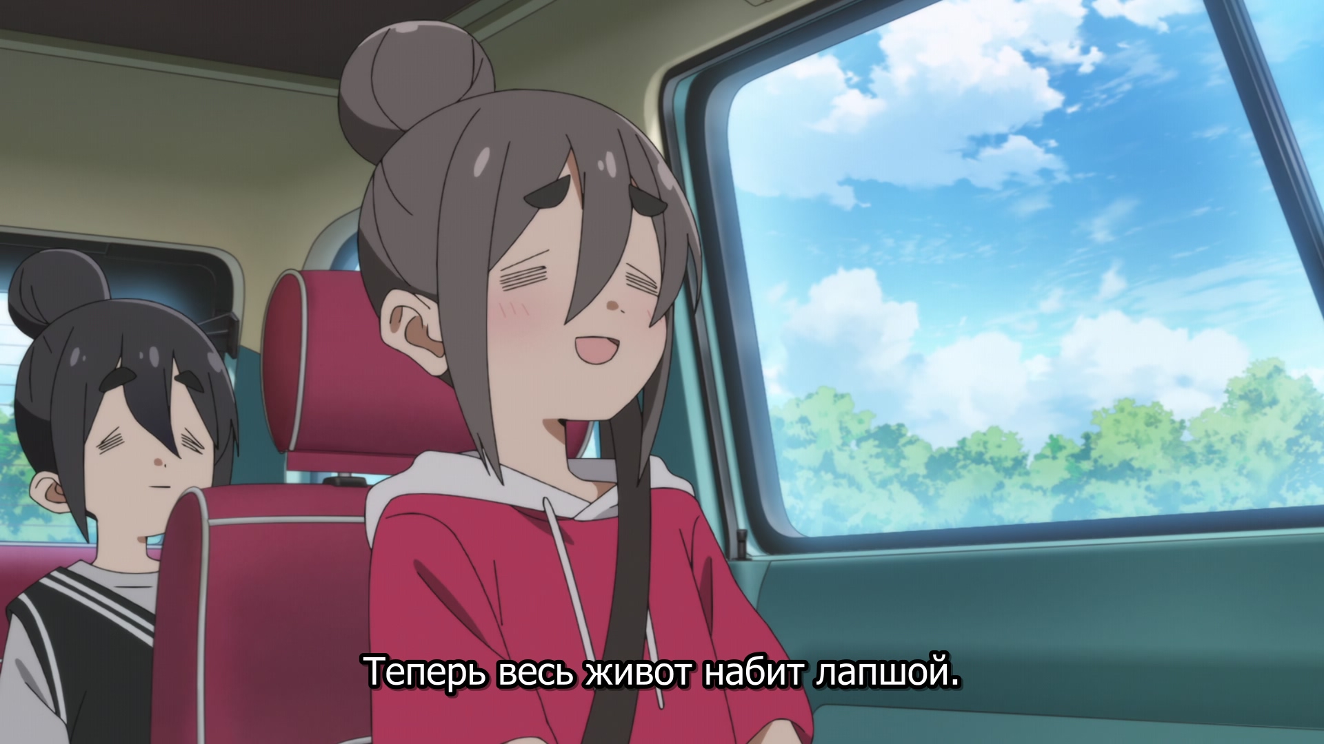 И в подмётки Юрукяну не годится, по крайней мере содержательно. У главных героинь нет и толики харизмы Рин и Надесико, которые вытащили даже уже откровенно халтурно сделанный третий сезон, а тут главную я до сих пор не помню по имени даже. Деятельность их откровенно бесцельная, "а сегодня мы повезём трех школьниц в винный магазин". Ну и само собой, комфи ощущения и атмосферности предшественника нет и в помине. Хотя, конечно, лучше, чем Зацу Таби, где просто половину экранного времени камера ездит за героиней и показывает, где она ходит и что смотрит, под редкие комментарии. Тут хотя бы добавили нормальные взаимодействия персонажей, просто им харизмы недостаёт.