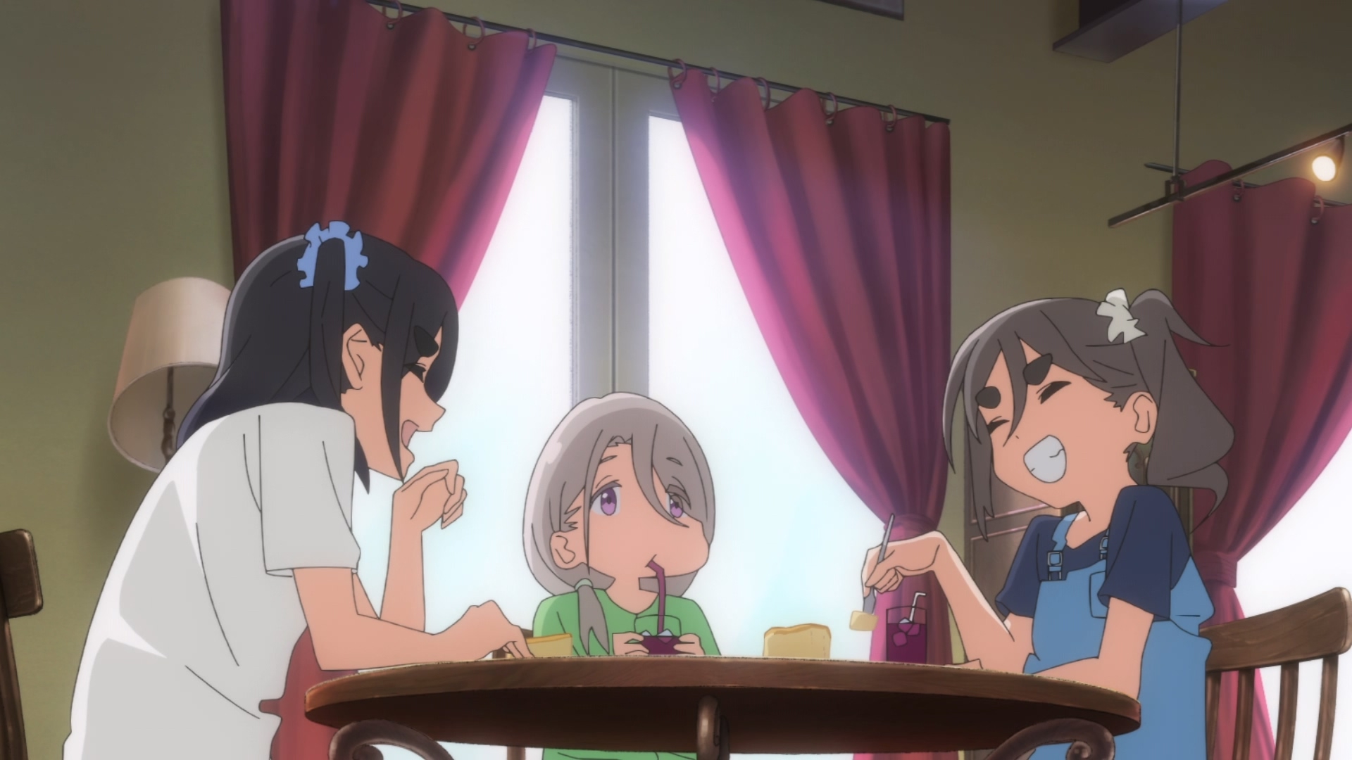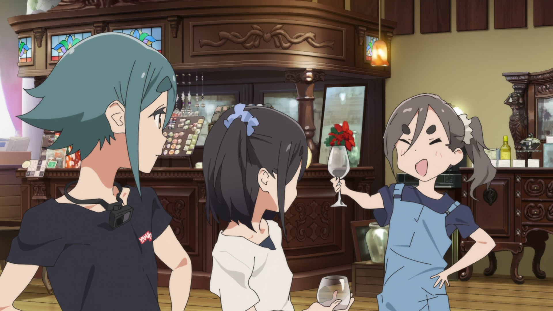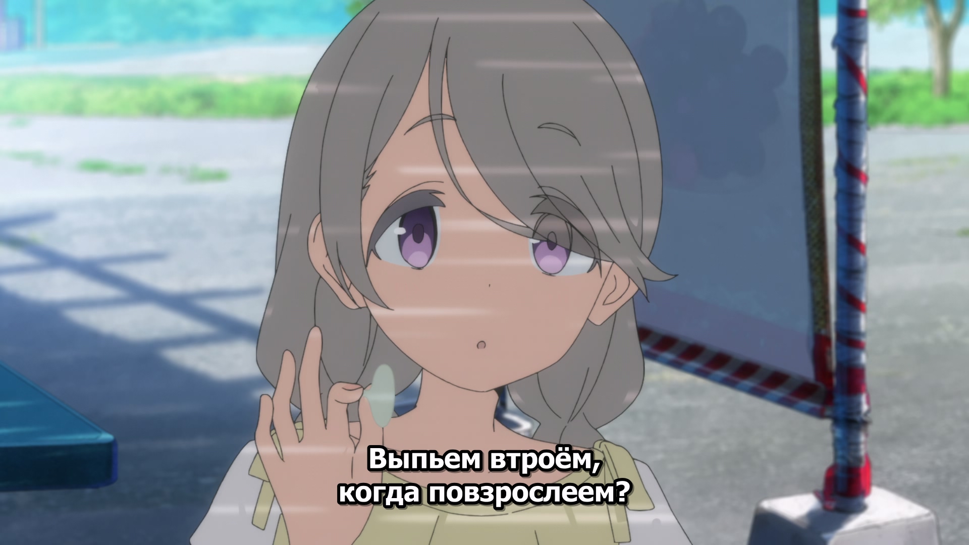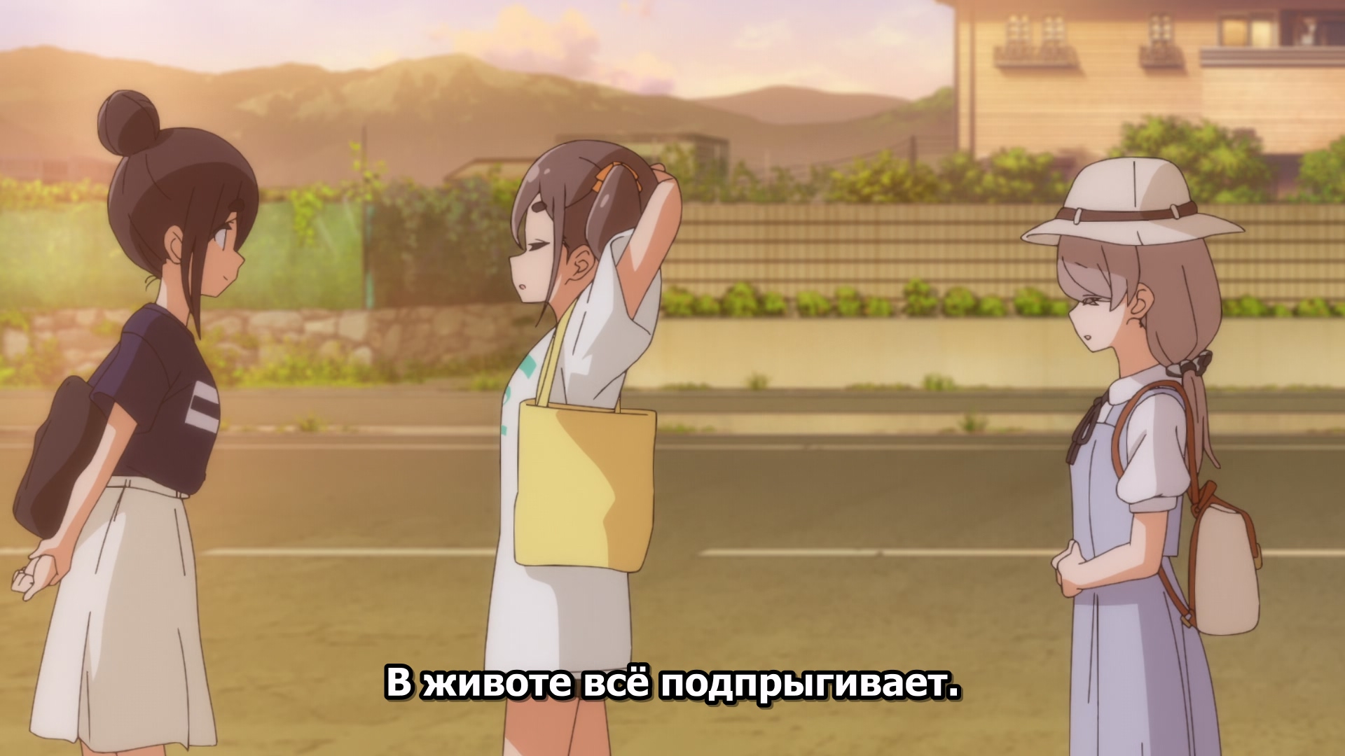 И в подмётки Юрукяну не годится, по крайней мере содержательно. У главных героинь нет и толики харизмы Рин и Надесико, которые вытащили даже уже откровенно халтурно сделанный третий сезон, а тут главную я до сих пор не помню по имени даже. Деятельность их откровенно бесцельная, "а сегодня мы повезём трех школьниц в винный магазин". Ну и само собой, комфи ощущения и атмосферности предшественника нет и в помине. Хотя, конечно, лучше, чем Зацу Таби, где просто половину экранного времени камера ездит за героиней и показывает, где она ходит и что смотрит, под редкие комментарии. Тут хотя бы добавили нормальные взаимодействия персонажей, просто им харизмы недостаёт.