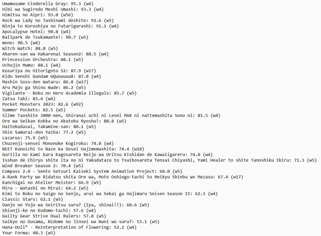 >>187601 > Впрочем это в принципе всех годных тайтлов сезона касается - они все где то примерно там, а малодауны каку-то срань Скрытый шафтовин (уже нет?) на первом месте, лазарус на втором, четвертое комедийное шоуджо от олда джампа, шестое бывший скрытый шафтотайтл без шафтостаффа.