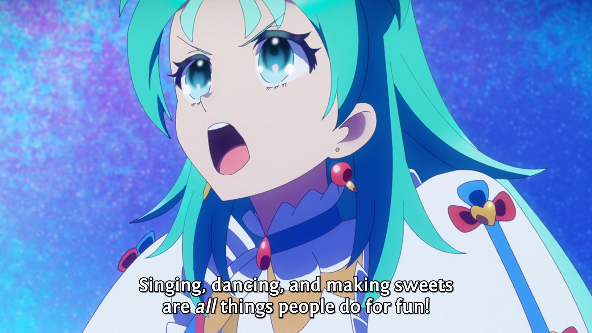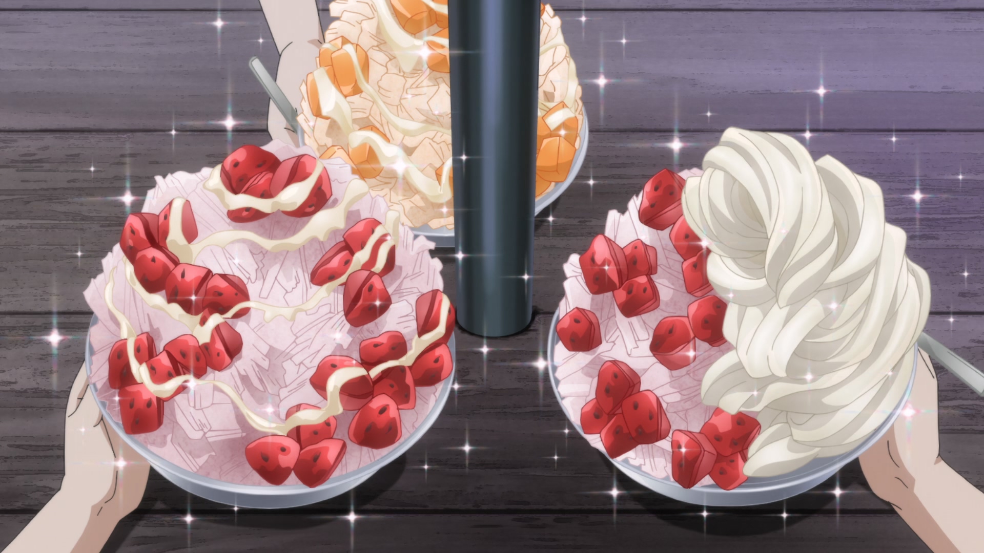 В предфинальном эпизоде девочки поехали пробовать тертый лед из разных мест. Мне кажется этот эпизод заключает в себя эссенцию всего шоу, ведь что такое эти какегори: оформленная вода, украшенная сладеньким цветным сиропом. Возвращаясь после этого пилигримажа девочки даже обсуждаеют как они наелись, но мы то знаем, что это не более чем иллюзия - в следующий момент они слышат зов природы, бегут в туалет, а когда они из него выйдут, то от всего этого иллюзорного наполнения не останется и следа.