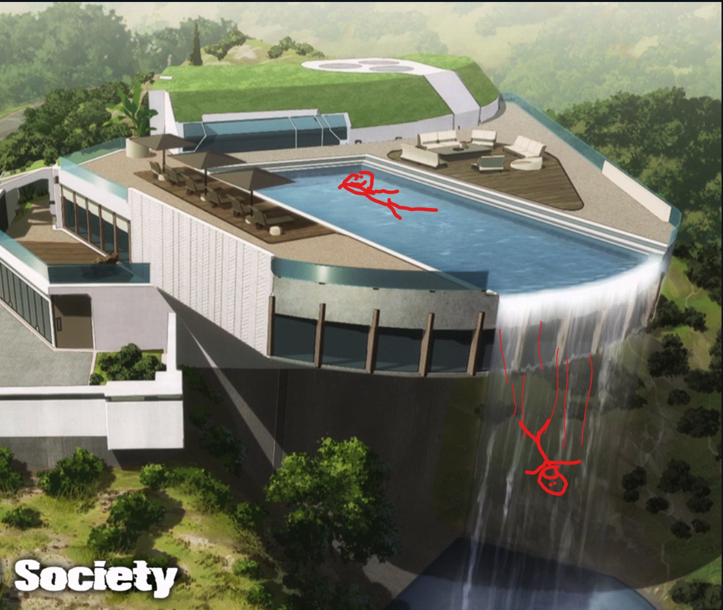 >>187801 Да ну нет же, там очевидно барьер уровень которого лишь чуть ниже так что только узкая полоска воды стекает. Зато красивая стена воды перед окном и ниже. Очень круто, вечером подсветку на это еще