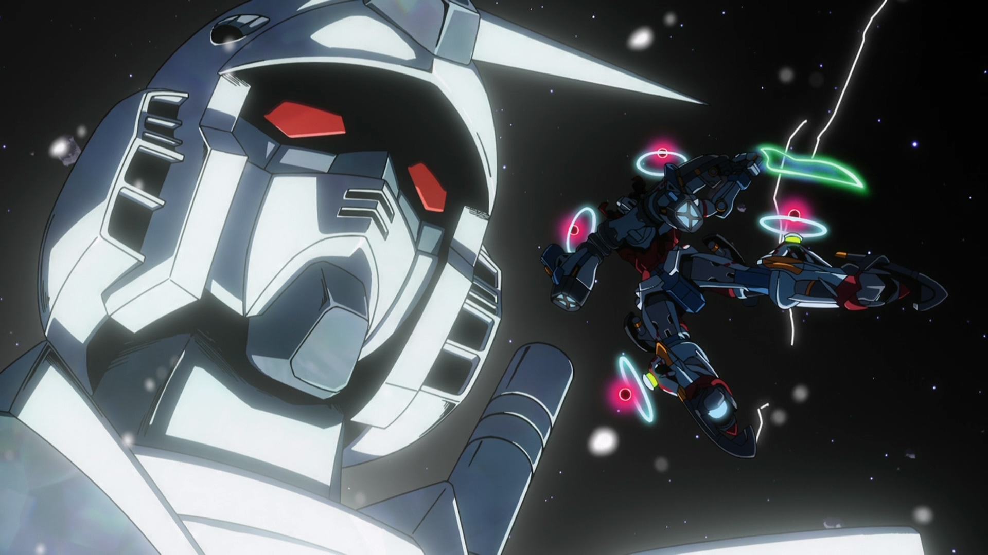 Так, ладно, все же нужно что-то сказать о новом гандаме, хотя сперва хотелось увильнуть - ясно было, что в два слова не уложиться. Еще говоря о первом эпизоде я отмечал то видимое и подчеркнутое разделение двух эстетических и тематических миров - "взрослый" мир "настоящего" гандама - политики, войны, строгих мундиров, приглушенного цвета, наукообразной терминологии, богатого лора и бесчисленных отсылок к прошлому, и Тсурумакивский мир подростков - яркий, но томящийся неуверенностью, мир порывистых поступков и нерешительности, социальной клаустрофобии, незнания своего потенциала, открытий, долгих сцен у маленького окошка, давящих стен, больших фантазий и ограниченного знания. И моим изначальным предположением было, что на этом контрасте Тсурумаки хочет сделать еще одну flcl - историю о подростковом экзистенциальном переходе и сексуальном становлении. Однако когда эти миры начали пересекаться, сталкиваться и проникать друг в друга - стало понятно, что все не так просто. Ярче всего этот контраст конечно проявляется в том, как представители разных миров видят, переживают и описывают опыт ньютайпа и зекнову - для первых это вот эти вот термины и понятия, которыми они оперируют, рассматривая через экраны датчиков, для вторых - чистые и новые эмоции, несформированный субьективный опыт, которому нет названия, который можно хоть как то выразить только разрисовывая стены экспрессионистским артом в духе Поллока и придумывая ономатопоэтическое "кира-кира" - не слово, а озвученное переживание. Так мы видим всю эту гандамовскую мифологию глазами тех, у кого для нее нет языка - и это столкновение подчеркивает кризис языка уже всей этой 45-летней франшизы - влиятельной, закостенелой, запертой в собственных мифах и недружелюбной к посторорнним. В этом плане интересен персонаж Сюидзи - по всем признакам он должен принадлежать "Тсурумакивскому миру", если бы не тот факт, что он по сути полностью лишен субьектности - словно управляемый богами персонаж Иллиады, он управляется Гандамом - богом франшизы, медиумом которой Сюидзи и выступает. Все окончательно становится на места, когда открывается, что весь мир джиквакса это сновидение Лалы - буквально лакуна внутри канона и попытка переписать или расширить его. Вторжение "с той стороны" оригинального Белого Гандама, управляющего Сюидзи(не наоборот), под "Beyond The Time" в финале 11ого эпизода - пробирает до мурашек, это возвращение сквозь эпохи носителей оригинального мифа. Его неуместный тут "устаревший" визуальный и саунд дизайн не смотртся нелепо - он подавляет. Этому могучему реликту наплевать даже на законы жанра real robot, который он же и создал - он абсурдно увеличивается в размерах, захватывая пространство и заставляя эти новые мехи выглядеть пластиковыми игрушками, рекламой которых они и созданы. Это воплощение мифа, не принимающего новое, которое пришло уничтожить ошибку, восстановить и запечатать канон. Настоящий финальный бой это диалог Сюидзи и Мачу, голоса франшизы и ее чистых и новых эмоций, которые в конечном итоге пробиваются к Красному Гандаму, уставшему наблюдать за этой продолжающейся годами "резней" ради канона и восстановления нарративного фундамента, и который наконец отпускает Сюидзи, позволив тому стать субьектом, вернуться в "мир Тсурумаки" к которому он явно принадлежит, принять чувства М