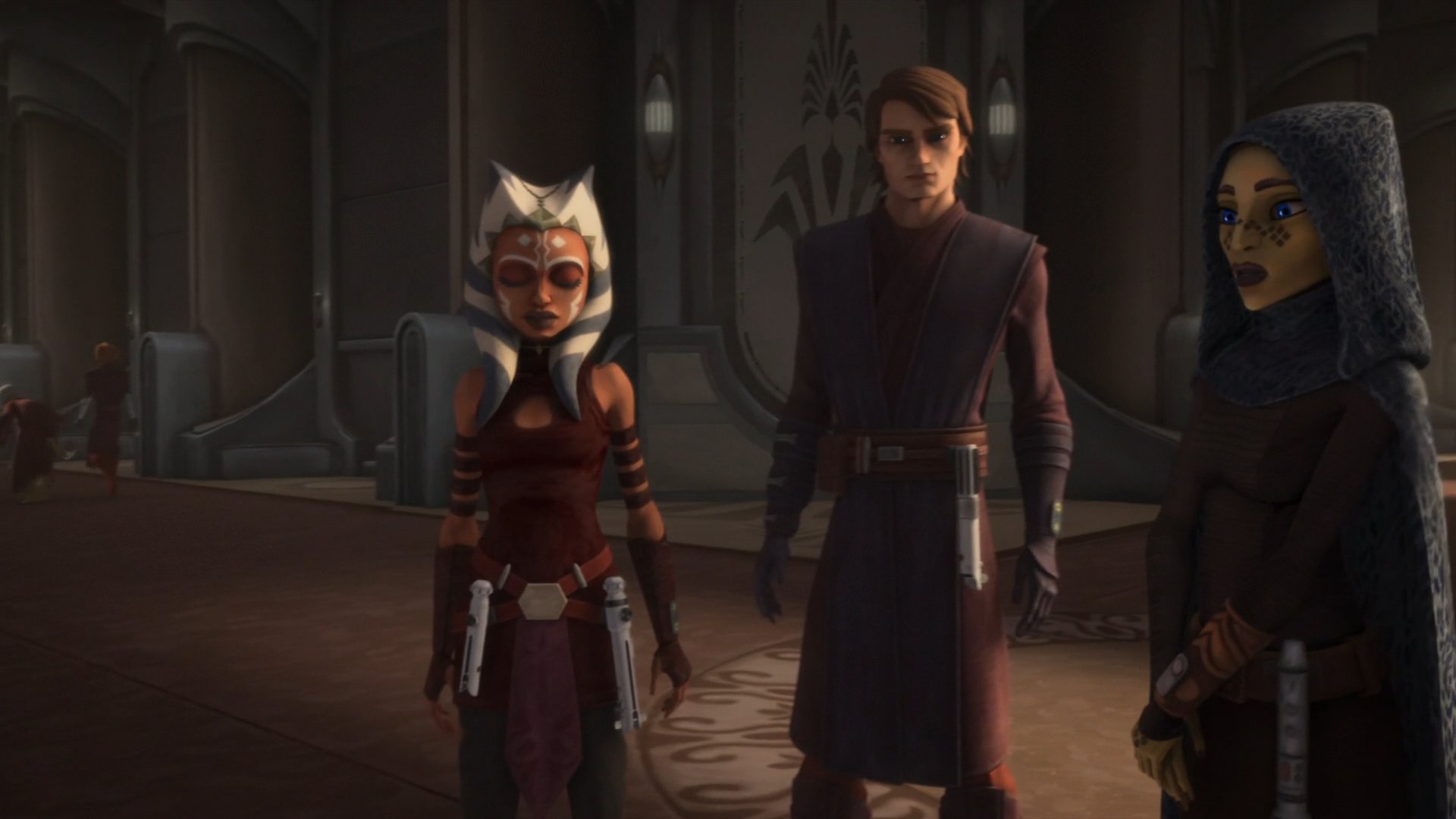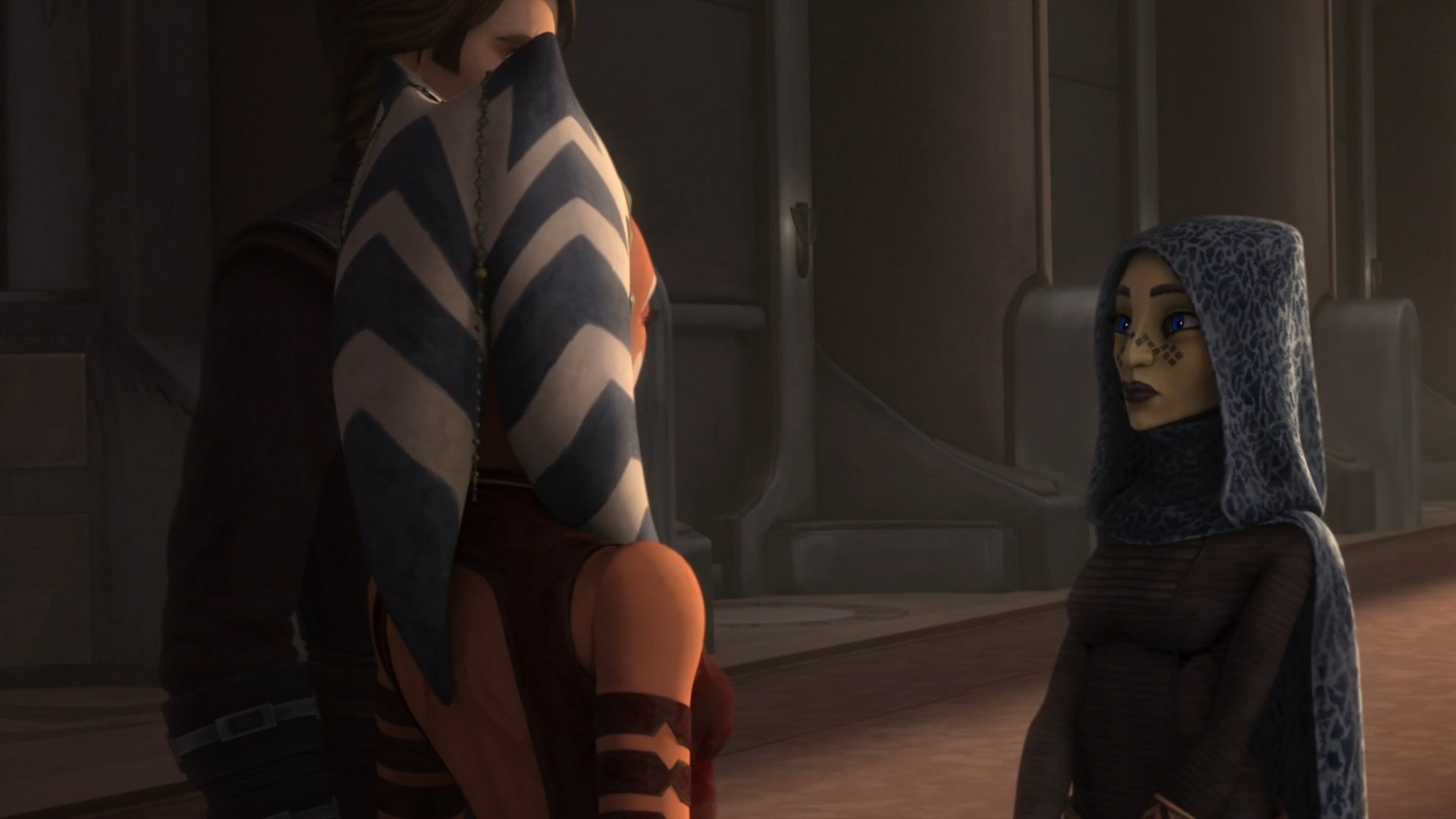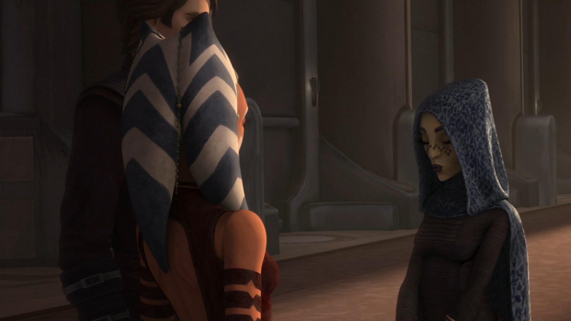 Такой наряд явно антицеломудрен. Хоть бы традиционным плащом фигуру прикрыла посреди храма. Вообще не понимаю, как можно дрочить светлую сторону, когда вокруг постоянно столько горячих подавваночек. Поэтому весомую долю ситхов и составляли всегда джедаи, когда им крышу срывало от контраста вечного воздержания и вседозволенности.