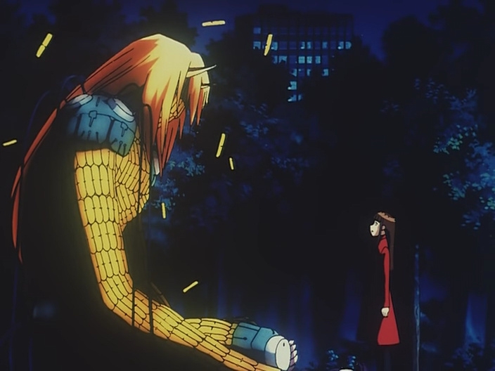 Атмосферно серый, тяжелый, медленный тайтл, с частыми статичными сценами. Экшн хорош в плане реализма, но его тут немного и реалистичность сказывается на эффектности боев, которой тут, в отличии от евы или гандама, гораздо меньше. С другой стороны, мне понравилась техничность сцен в городской застройке, или внутри помещений, да и вообще очень часто приходила мысль что я смотрю что-то вроде документалки. В плане политического нарратива это очень похоже на второй мувик Патлабора. Интриги, заговоры, тайные сообщества, повторяющиеся исторические ошибки тысячелетнего прошлого. Мистическая составляющая присутствует сквозь весь сюжет в основном в виде намеков, физических последствий для персонажей и окружающего мира, фраз, и влияние ее на историю начинает раскрываться только ко второй половине тайтла, однако конкретных ответов так никто и не даст. Персонажей много, но практически всем уделили внимание, от чего главные герои не были уж такими главными, скорее на первом плане была сама история, а точнее повторение истории. Одни ищут могущества, другие пытаются найти экзистенциальные ответы, третьи хотят изменить по их мнению прогнившее общество потребления путем изменения режима. И сюда вплетаются недавно изобретенные мехи и их влияние на разрешение военных конфликтов. Убедительно показана история создания мех - на основе чего, с какой целью. В некоторых моментах тайтл напоминает триллер, например при побеге с базы на самолете, или при раскрытии тайны семейства Гова. В общем никакой романтики в вождении мех тут нет, те люди которые могут это делать без лишних проблем не испытывают особых эмоций, а обычные водители подвергаются огромным нагрузкам, иногда с последствиями для организма. Безжалостные экспериментаторы также присутствуют.