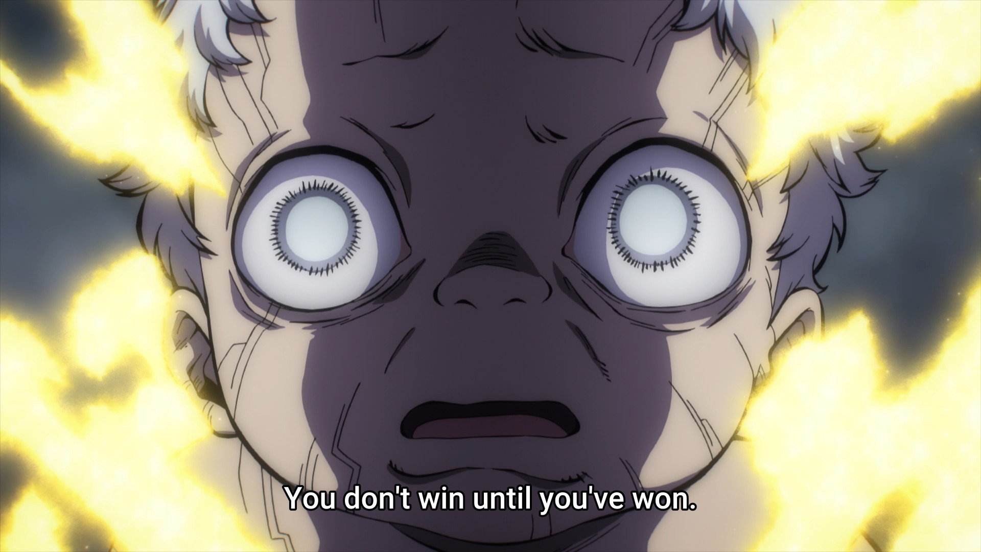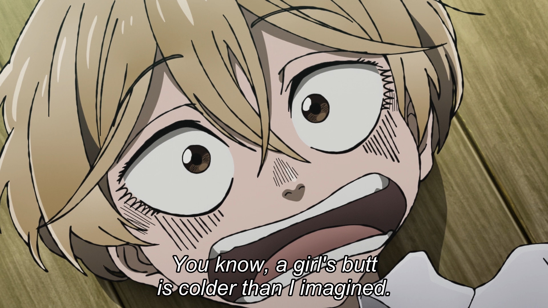 Главный герой идеально олицетворяет собой все это произведение. Тупой как пробка, упертый как баран, с дружбомагией головного мозга, регулярно творит дичь, а когда проебывается может только выпучить глаза, скорчить рожу, воздеть к небу кулак и заорать МАСАКА!... Но сюжетная броня хранит его. Вообще я бы лучше посмотрел как Кусака строит новую Японию будущего, потому что в текущем виде основной посыл сериала, максимально жалкий и терпильный, абсолютно чужд мне. Зато можно на кораблики подрочить, кому надо.