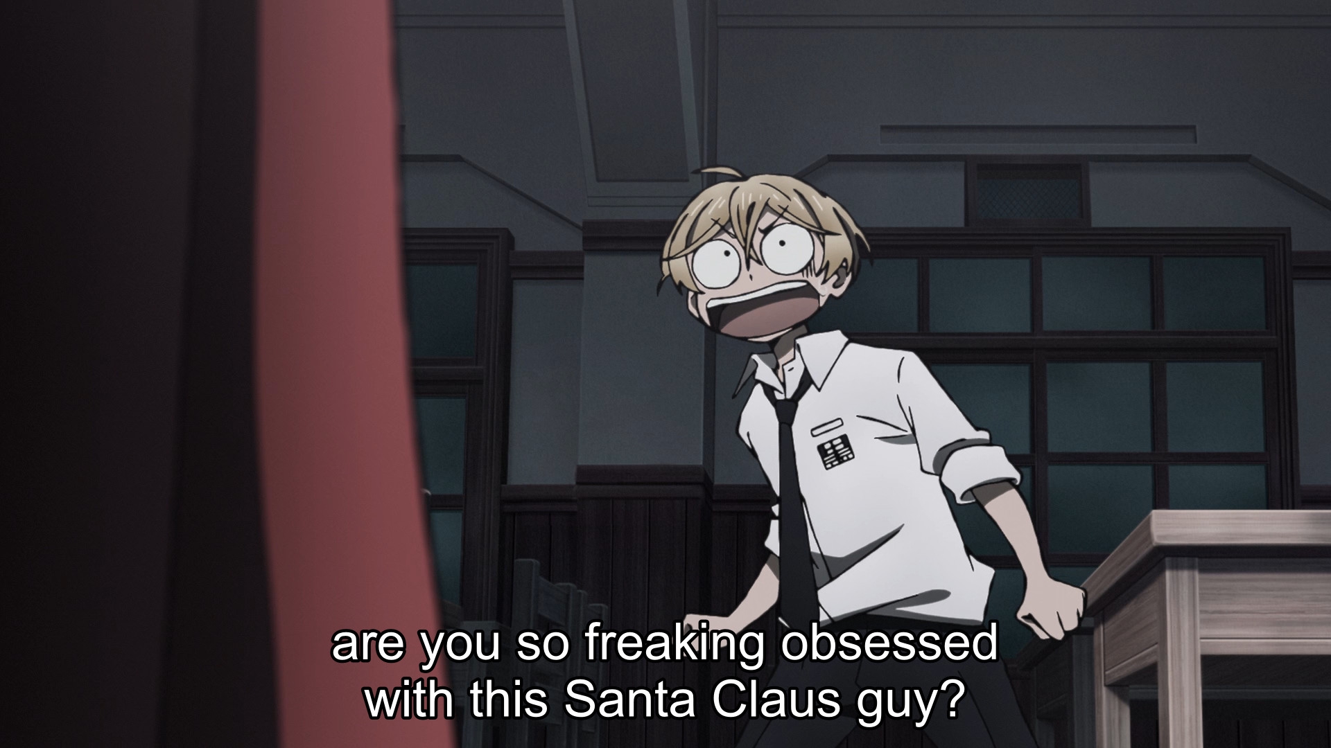 Вторая серия послабее по контенту. Надеюсь, дальше всё же сосредоточатся на поиске пропавшей подруги Фуюмуры + на их странных взаимоотношениях, потому что заговоры всего мира по поиску Санты меня не особо вдохновляют.