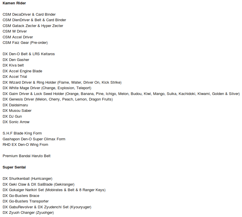 >>3378 У тебя она САМАЯ БОЛЬШАЯ. Не думаю что кто-то еще сможет столько денег тратить на КСМ белты. >>3383 В пикрилейтеде старый список токустаффа, вроде ничего больше не покупал, СРАНЫЙ КУРС РУБЛЯ ВИНОВАТ. >>3388 Лучше на али брать, они там как раз под стандарты tamashi stage >>3392 Есть, но там встроен уже софтсаб, если чо. Придется вытягивать. >>3396 Отсылок реально дохуя, лучше посмотри когда за твоими плечами будет много сентаев до гоонджеров