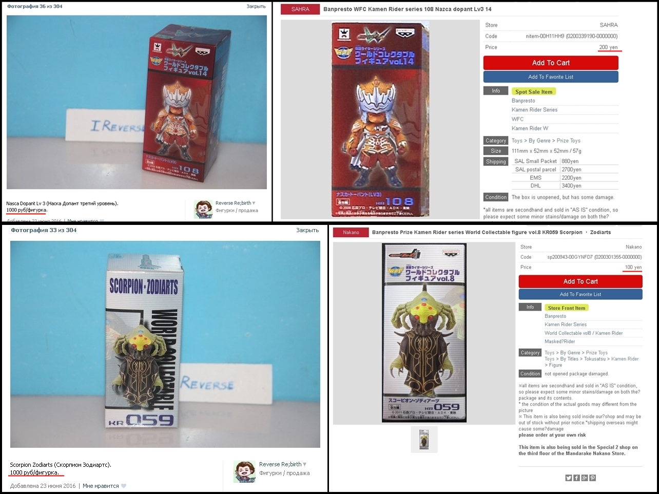 Короче: кошмарный оверпрайс, кошмарный. Я сравнивал с ценами на Мандараке и прочих легкодоступных сайтов. Скорее всего, вся эта хуета была куплена на Яху Аукционов, где коробками можно брать копеечный токустафф, только за доставку заплати, она там не дешевая, если мало заказывать предметов. У меня друг вообще купил коробку с белтами из Кивы за 5к, ну, а на обычных магазинах цена раз в 7 выше. Коммьюнити и так маленькое, пытаться наживаться на нем - мерзко.
