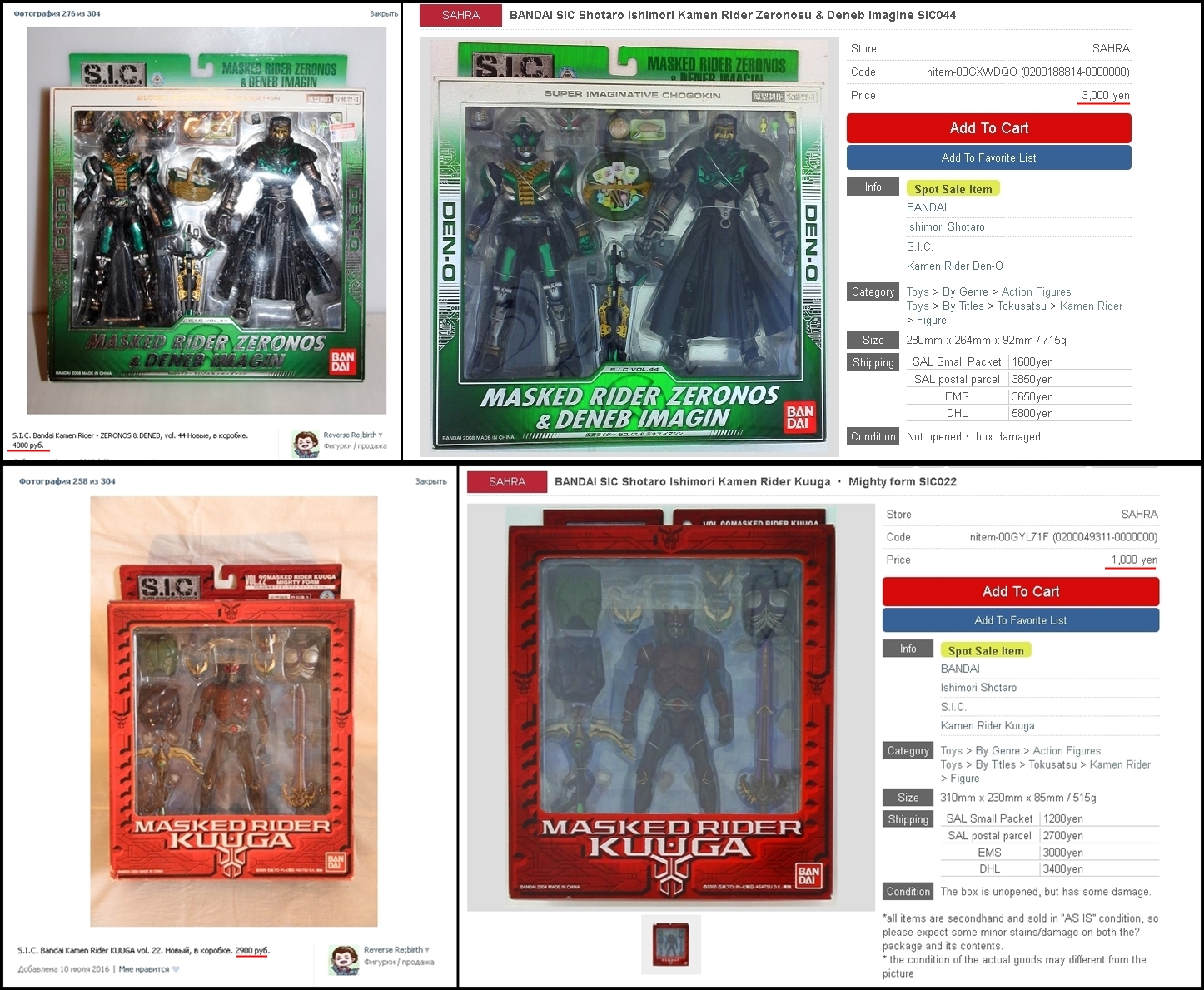 >>3622 Цены сверяю по ебею. Да - где-то оверпрайс, но на то авито и барахолка, чтобы завышать и торговаться. Месяц назад цена ставилась по нижней границе ебея. Сейчас курс доллара скаканул, предложения прибавилось и некоторые цены самой кажутся дикими. Готова торговаться. Что до S.I.C. - цену считаю адекватной, фигурки того стоят. И если на манде его сейчас много, то лучше повременю продавать совсем, нежели скину до нынешних цен алсо, на манде все равно накинут за пересылку, да и товара банально может не оказаться в магазине.