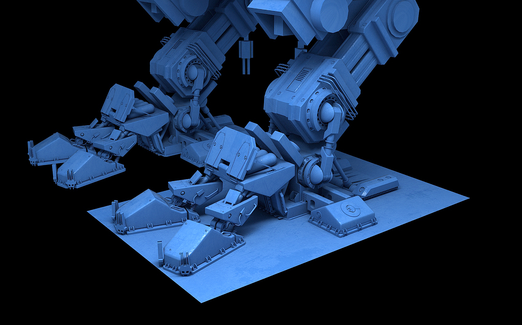О, я как раз моделирую в 3д меха. вот концепт и начало детализации одной лапы (пока с однотонной тектстурой просто так) может посоветуете как раз чего-нить ну или концептов накидаете моделить буду долго, месяцев 7-8, будет все с текстурами итд
