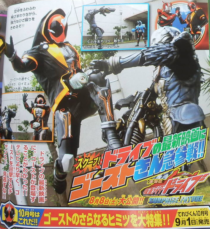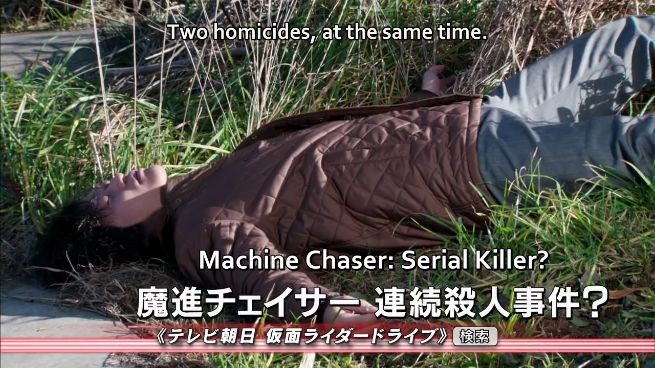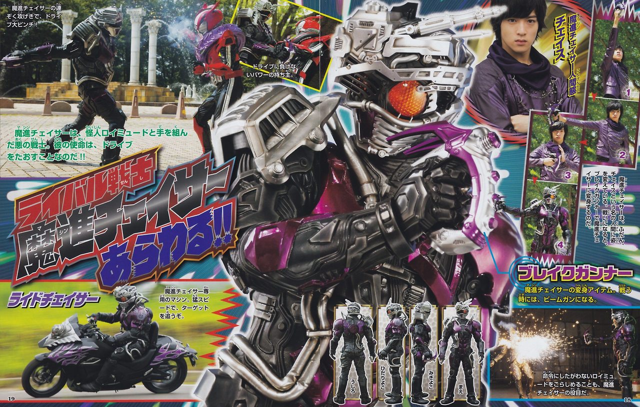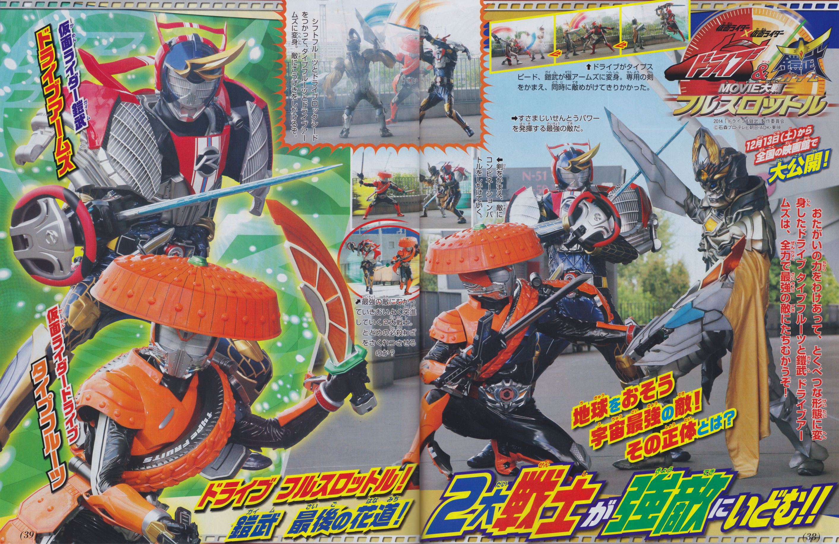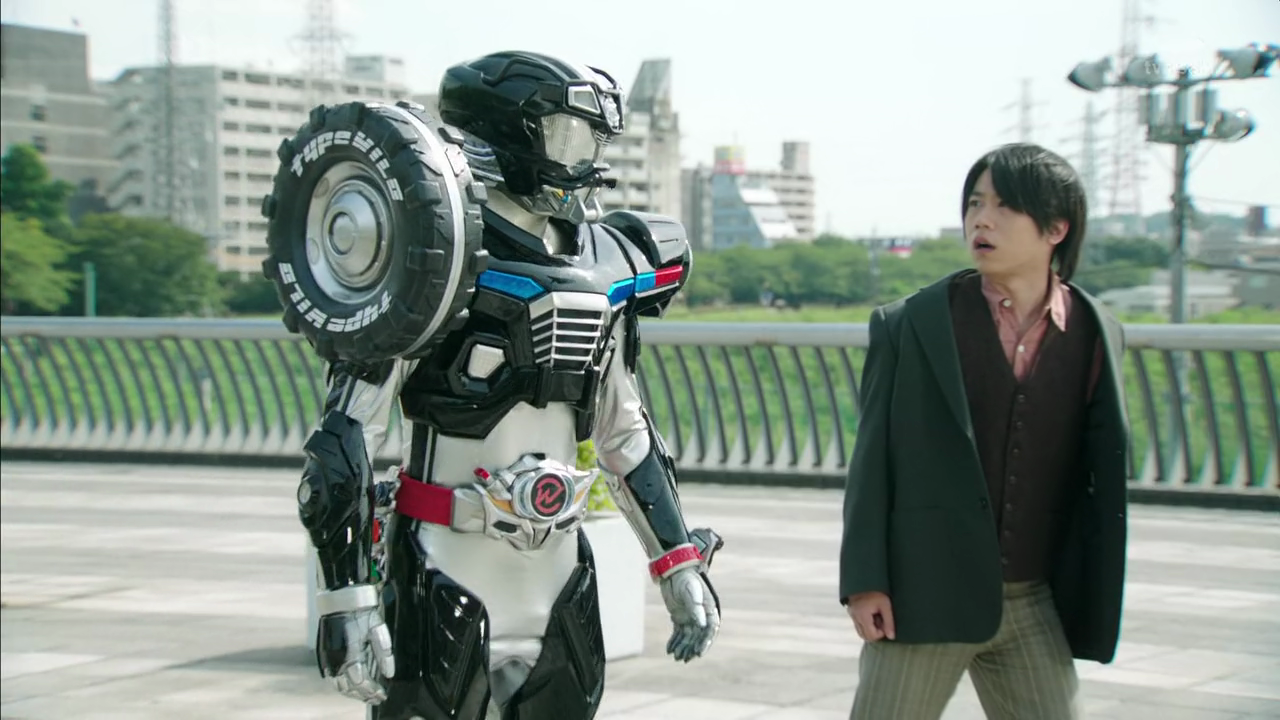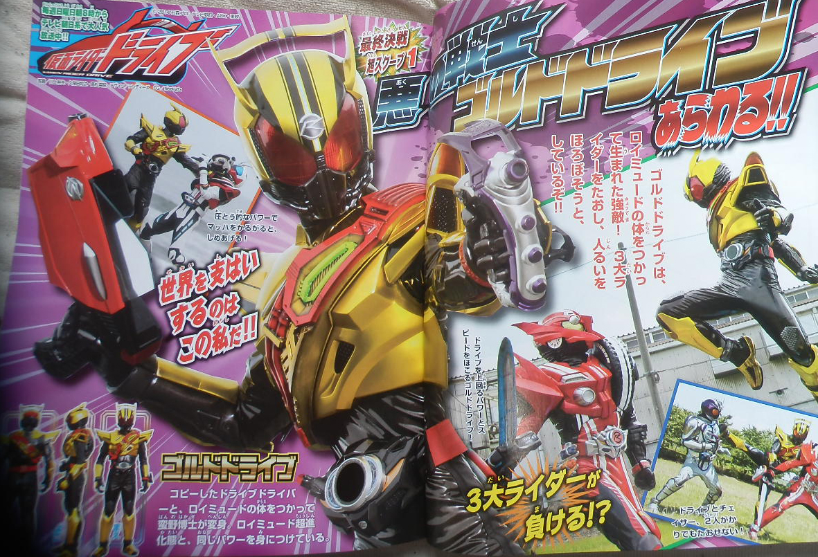 >In a shocking turn of events, Professor Banno will show his true colours by transforming into the evil warrior Kamen Rider Gold Drive! Using a Roidmude body and a Drive Driver copy, Banno now possesses the same power as a Roidmude’s Ultimate Evolved State. >Meanwhile, the Tokyo Metro P.D. have constructed their own Mass-Produced Mach armour that will allow police officers to fight against the Roidmudes. The final battle is fast approaching!