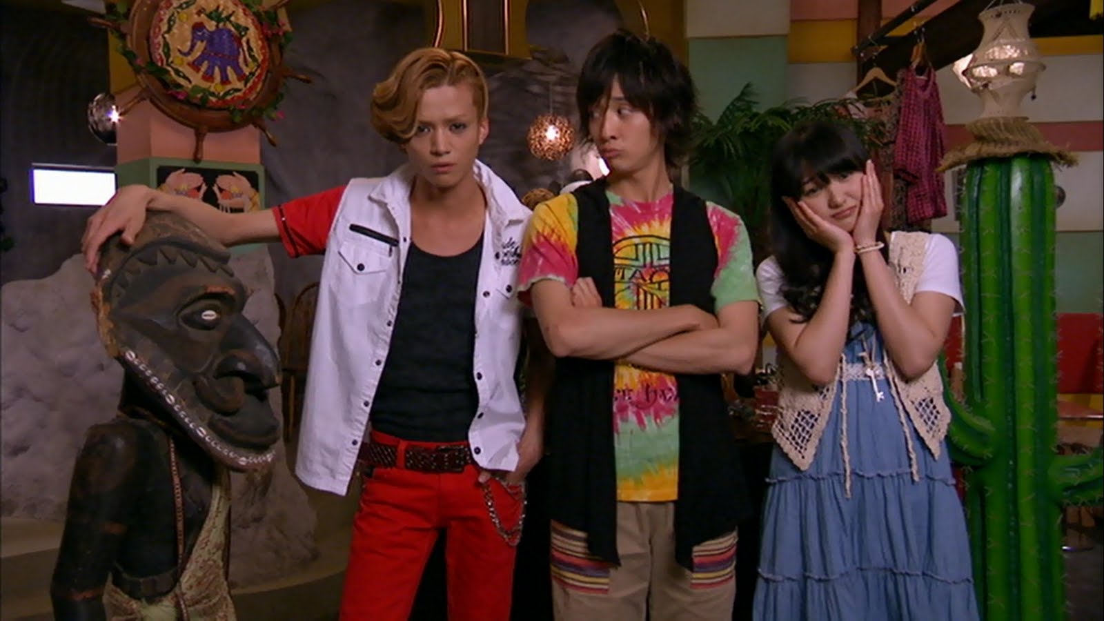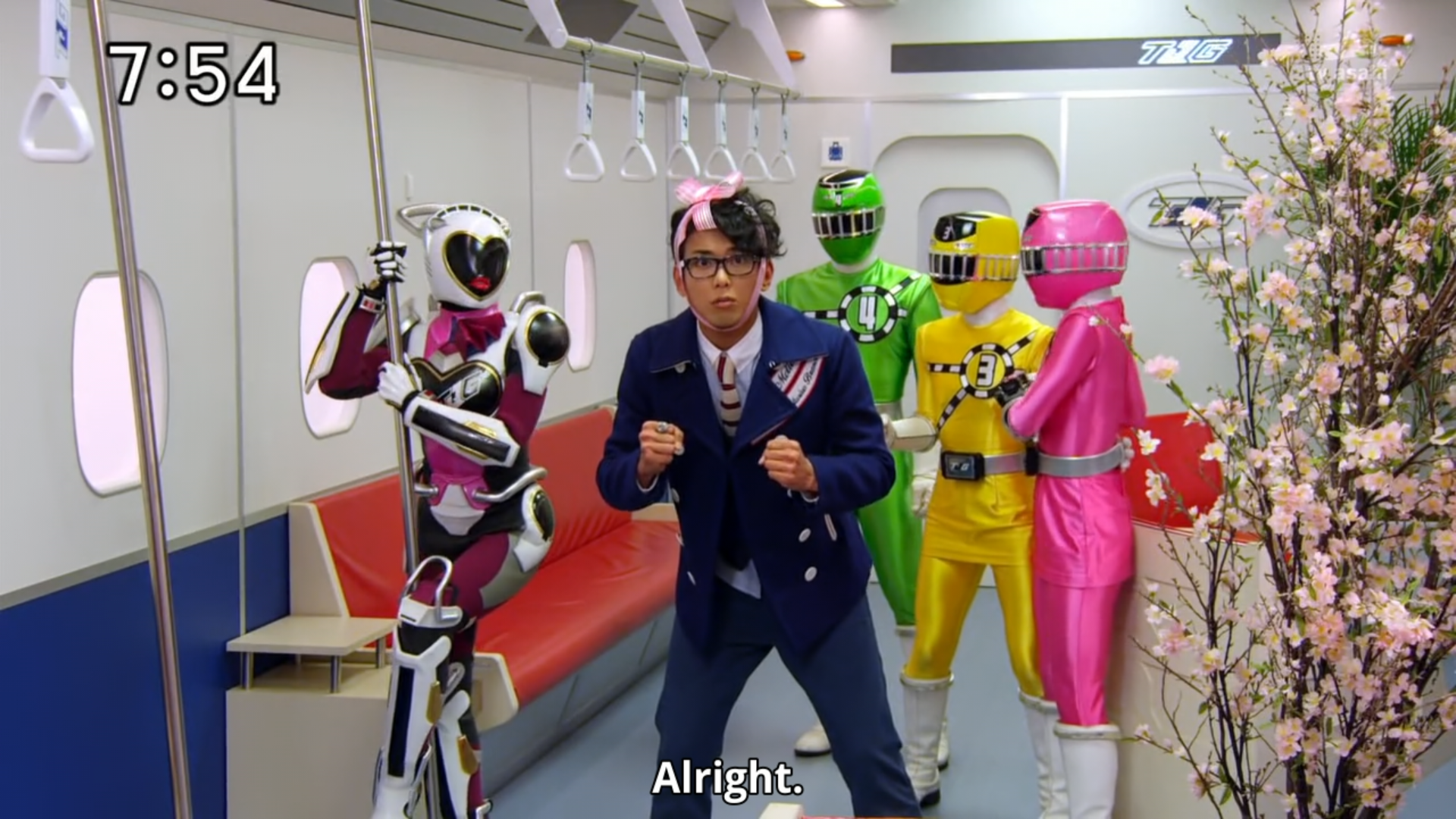В целом, начало неплохое. Вернули нормальную хореографию, градус неадеквата снизили по сравнению с предыдущим сезоном. Доставил дизайн главного йокая, эдакий диабло получился лол. Пехота с огнестрелом тоже нечто. По рейнджерам: Красный - не хватает харизмы. Синий - охуенный. Белая - вообще никакая. Иногда хочется взять и уебать. Желтый - хуй знает, мутный поц. Пока больше на лошару смахивает. Розовая - адекватная няша. Меха - норм, правда управляется каким-то ебанутым способом. Гаттай заебись. Монстры создаются путем переселения души йокая в неживой предмет, почти как в джетмане алсо красный робот напомнил тетрабоя