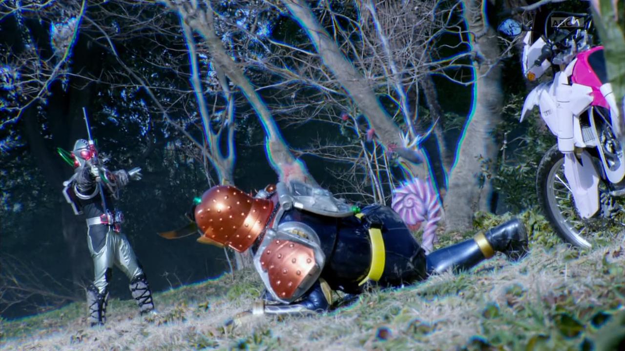 Ох уж этот Банно. Даже не гнушается использовать собственных детей для достижения своих целей. Алсо меня все еще беспокоят его слова о Криме. Но какие могут быть скрытые мотивы у Крима? Доставил райдер дабл кик Шинноске и Го. Но, как обычно, наложенные спецэффекты в целом портят картину. Без них было бы эффектнее. До окончания основного сюжета осталось всего 6 серий. Как мне кажется, особого эпика ждать не стоит. Алсо, беспокоят все эти путешествия во времени, которые будут в мувике. Благодаря им, сценаристы могут "стереть" глобальную заморозку и все ее последствия. Нахуй и впизду если так будет.