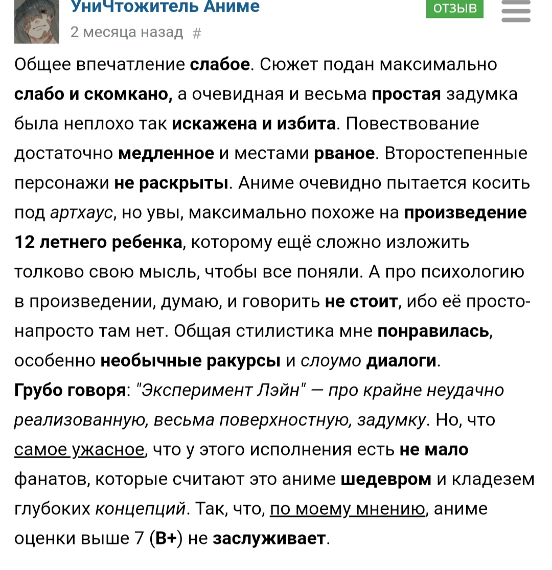 В целом.. Набор отсмотренных тайтлов хорош. Практически нет шлаков. Оцеки в большинстве своём объективны.
