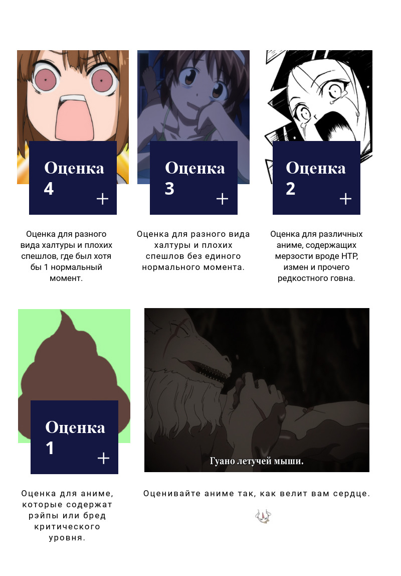 Надо просто смайлики придумать для вот этого >>90922 И к оценке не приплетать. А лучше вообще оценку смайлами заменить, которые отражают суть тайтла и твоего восприятия его
