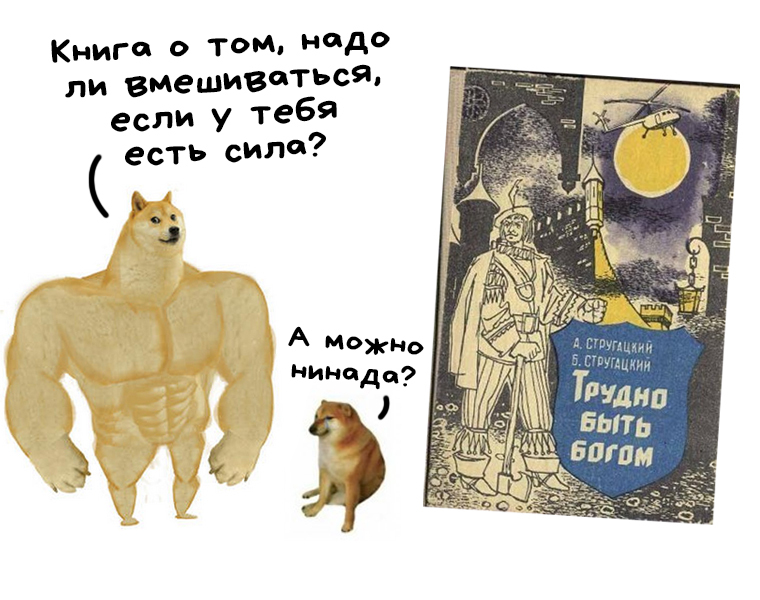 Ну ладно, Стругацких читал? Про прогрессоров там, или Жука в муравейнике, или Трудно быть богом? Вот, это оно только в меньшем масштабе.