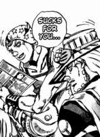 Ага, за исключением Джорно, норм вообще у него сыновья, ага. Торчок, хиккан и параноик. Охуеть.Кстати, почему Джошуу выглядит так, словно у него перманентный баттхерт?