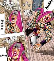 Господа, на ваше мнѣніе, какая часть самая жестокая и кровавая? Я вотъ думаю, что Vento Aureo. Интересно, какъ японцы будутъ снимать это, тамъ же два боя такіе, что половину экрана въ черный красить придется. Я имѣю въ виду схватку въ поѣздѣ и съ вертолетомъ, когда господинъ хирургъ порѣзалъ себя.