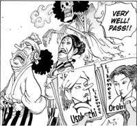 В самый разгар сражения прибывает Чернобород - чтобы пиздануть Драгона и Сабо и забрать их фрукты, у Берджесса к тому времени уже фрукт алмазного Джоза.