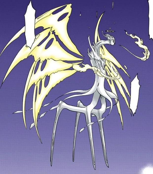 >Нимая не закладывает в меч абилку заранее, асаучи становится занпакто только под воздействием рясы своего владельца, воплощая что-то из внутреннего мира шинигами.