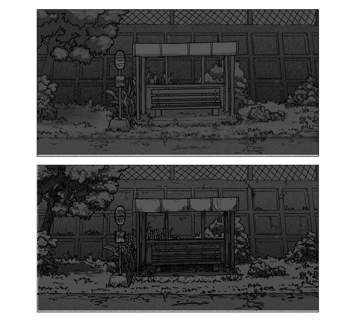 1 страницы - гг как вы помните Чистильщик Бассейнов. Выглядит как пикрил 1. На первой же странице, сидит в раздроченном общественном туалете и.... натужно.... дрочит. Нам показывают ракурс со спины, мы не видим его прибора, но персонаж пыхтит и изо всех сил гоняет своего дружка, активно залипая на открытку зажатую в руке. На ней изображен пейзаж унылейшего соснового леса и поднимающегося за деревьями солнца.