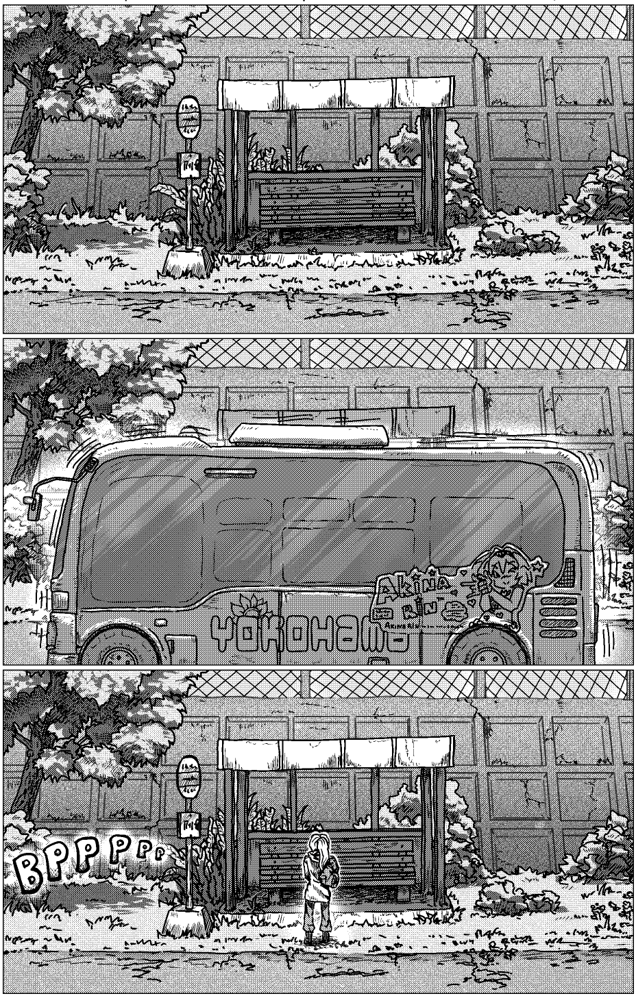 Парень признается девушке в любви, та обещает подумать, но тут ее внезапно сбивает автобус. Мигая фарами и гудя клаксоном автобус сообщает парню, что она - скромная четырехколесная тяночка, всегда была влюблена в него и стыдливо поднимала стекла, когда регулярно проезжала мимо парня, стоящего на остановке. Теперь парень, в свою очередь, обещает подумать, и подумать ему есть над чем - катаясь на автобусихе он с каждым разом подмечает элегантную аэродинамичность ее форм, ласковый рык мотора, удобство сидений... Но со временем он стал ревновать к ней, замечая, что в автобус-тян постоянно садятся незнакомые водители и гоняют ее по всему маршруту. Парень ругается с автобусихой, не слушает ее уверений что "это все просто по работе", подкарауливает водителей после смены, убивая их, и, в конце концов, впадает в отчаяние и изменяет ей с левой телкой. Поутру телка уходит от него, но почти сразу же за окном раздаются звук удара и скрежет тормозов - автобус-тян снова сбила соперницу. Парень и машина решают поговорить друг с другом по душам, пытаясь понять, почему они чувствуют себя по настоящему любящими и любимыми только тогда, когда убивают соперников? Почему и без того противоестественная связь между студентом и общественным транспортом возможна лишь когда они особенно болезненно осознают свои человечность и общественность? В конце концов, оба понимают, что обратного пути для них нет, парень покупает бензина на все свои средства и они отправляются в кровавое извращенно-изменническое турне по пригородным дорогам.