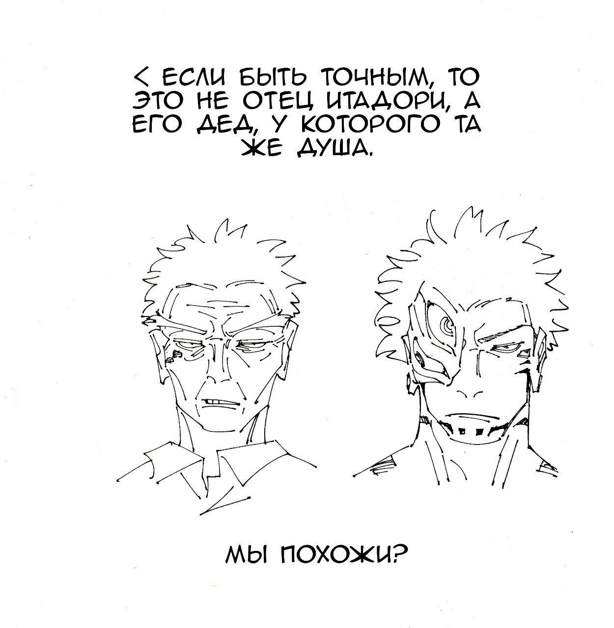 На словах всё выглядит по разному, но на деле всё абсолютно одинаковое, и сути диалога это не меняет. Срака дралась с ослабленным Сукуной, точно также как Таракан ослабил Деда Нетеро, отрубив ему руку тем самым обрубив потенциальное НЭН.