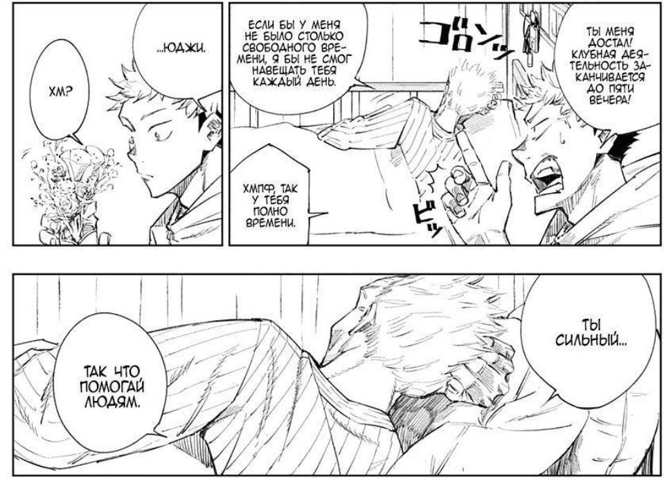 У сракутами какая-то аллергическая реакция с попыток закончить сюжет. У него последний шанс был, темы правильные выбрал, просто закончи блять. Он мог написать что Юджи женился на жирухе, четко сказать что Юта женат на Маки, позволить Срабаре встретиться со своей подругой (Он вообще помнит эту линию?), да блять у него даже панда не жив не мертв, полувялый ходит. Нее он даже в такой ситуации будет какую-то невнятную хуйню, которая ни на что не влияет и ничего не заканчивает, писать. Геге сама прирожденный говнописак