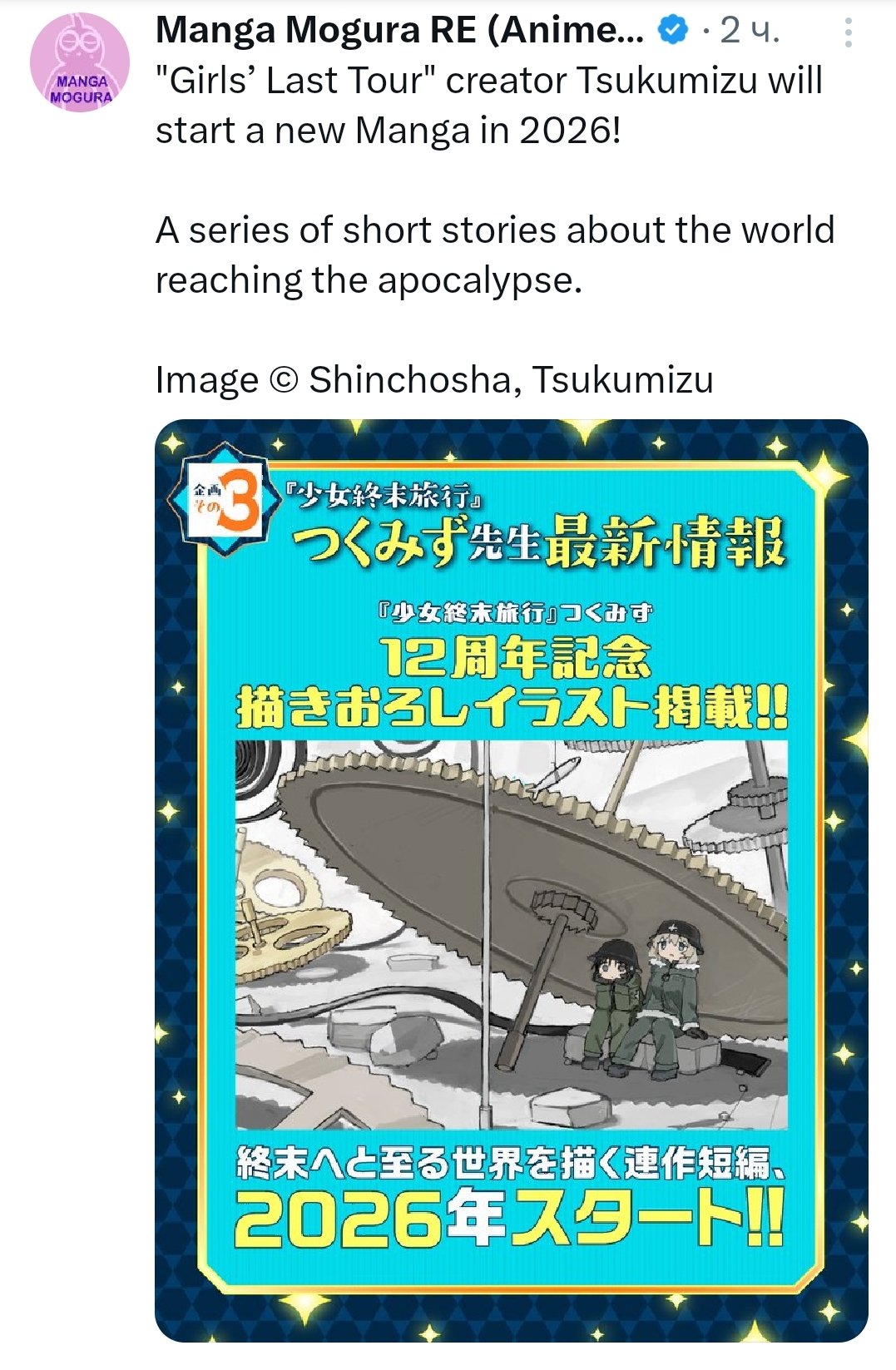 Не хочу жить в мире в котором Цукумизу больше не выпускает главы. Кажется всё скоро закончиться.