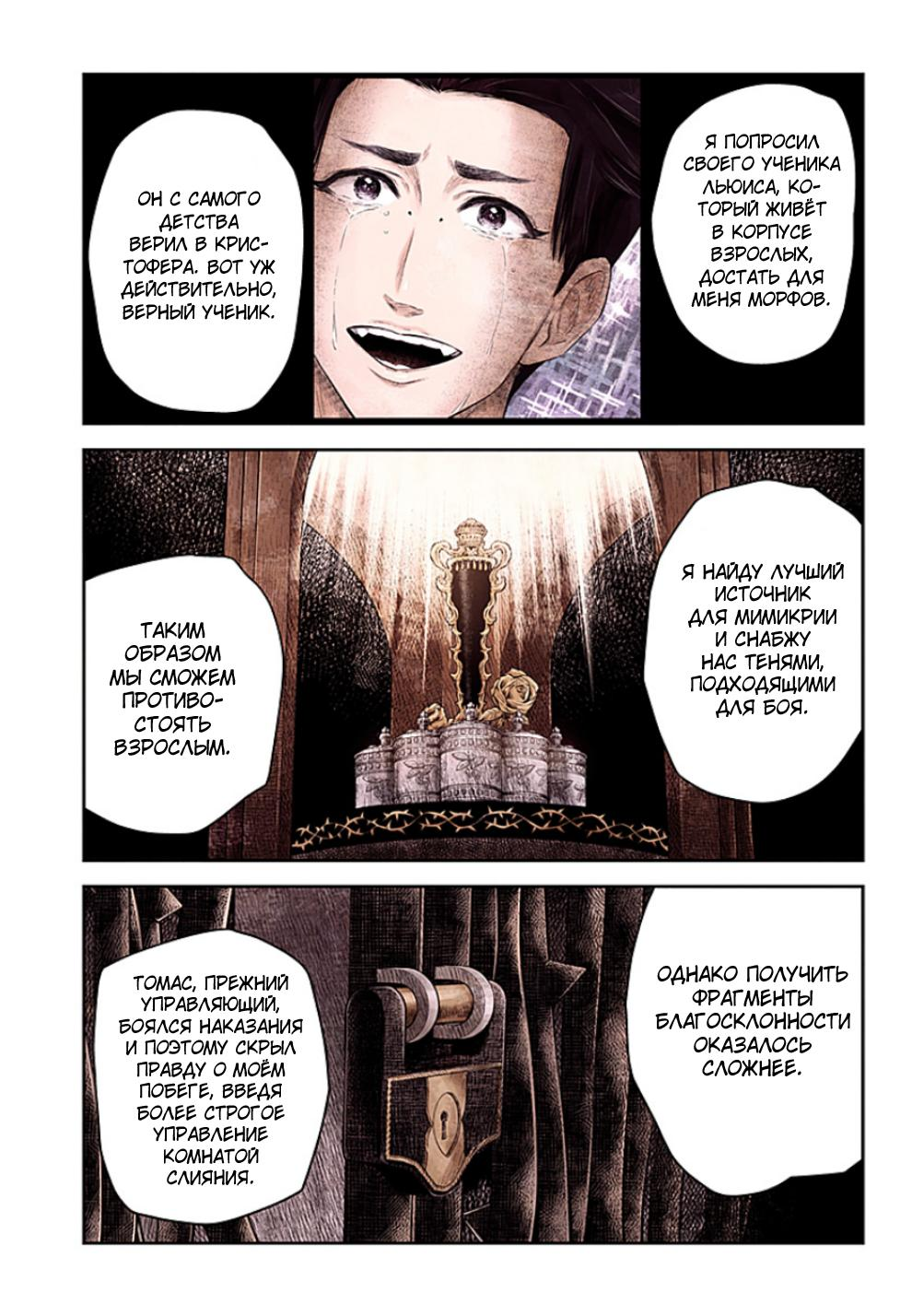 Ну вот и дочитал до онгоинга после перерыва в несколько месяцев. Эт чо, 10 глав получается только. Но ух, нормально так сюжецкий попёр, уважаемо. То, как Кристофера (я бля не помню как самого чела зовут) показывают вообще дико заходит. Я бы сделал ставку на то, что в момент слияния именно кукла захватила контроль над тенью, а не наоборот. Хотя учитывая эту склянку на шее, скорее там и лежат останки настоящего Кристофера. Вообще мне кажется он хочет подчинить теней в итоге, т.е. просто реверс устроить, где человек хозяин, а тень раб.