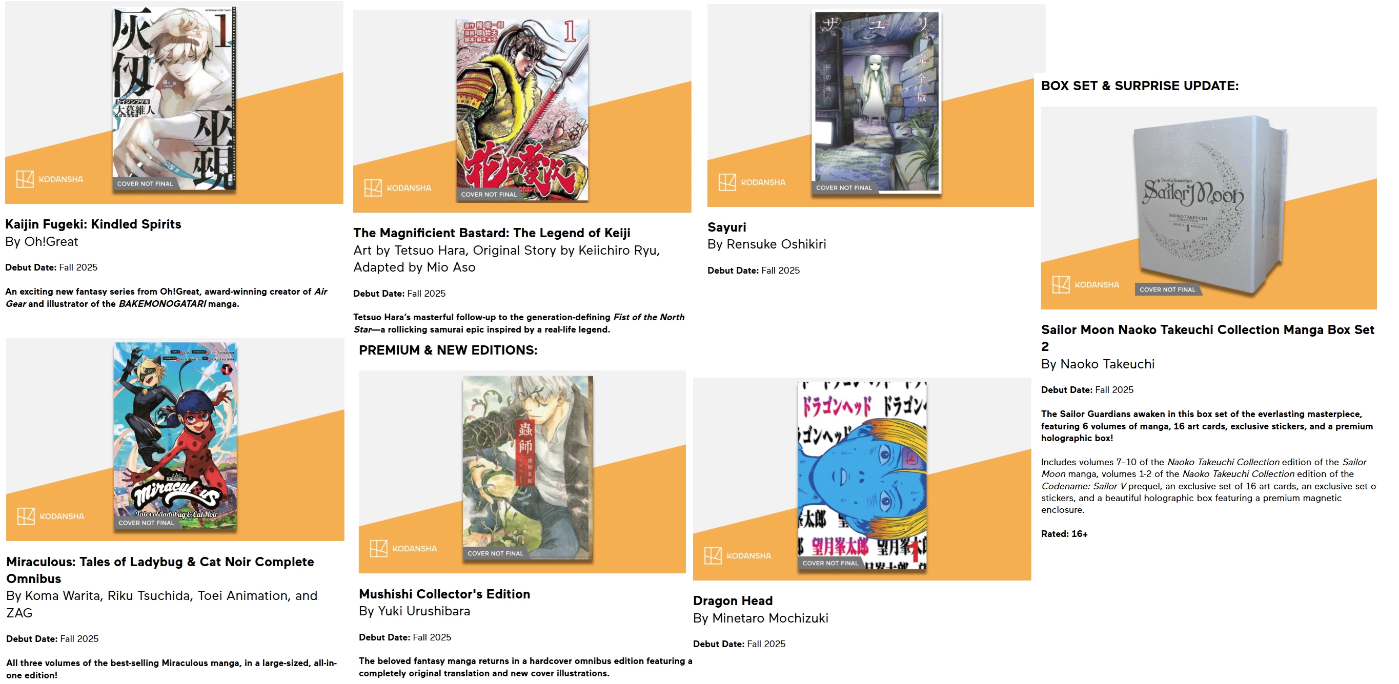 Новый анонсики от kodansha, yen press, seven seas и каких-то kodama tales. Из занятного: наконец-то Baki в печатке. Но у издателя это первая манга, так что посмотрим, что и почём выйдет. Скоро свет увидит переиздание Mushishi. Новость отличная, т.к. всё это время у меня горела жопа от оверпрайса за старое издание, а теперь, надеюсь, она будет гореть у продаванов, которые не смогут его сбагрить. Рекомендуемая цена - 30$. Также заанонсили переиздание Monster Musume. На кой-то хер в харде и аж 3в1. Учитывая размер томика, сомнительное удовольствие.