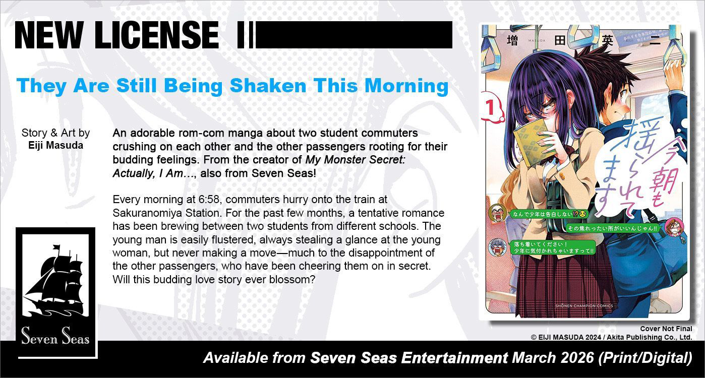 Не мог не принести, т.к. люблю этого автора. Seven Seas выпустит на английском "Kessa mo Yuraretemasu", от Eiji Masuda, создателя "Jitsu wa Watashi wa". Милейший ромком с весьма смешными шутками и великолепной рисовкой в фирменном стиле автора.