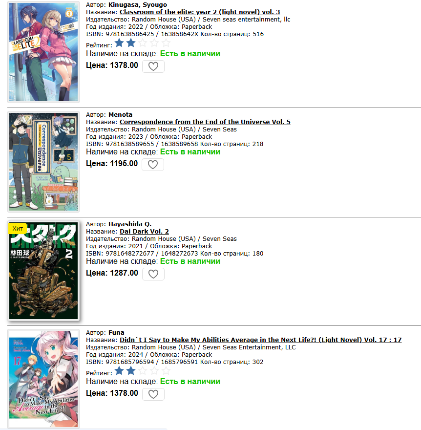 Анон, подскажи, сейчас есть какая-то возможность приобрести мангу издательства Seven Seas? Может, через перекупов? Я не особо в теме, просто захотелось пару тайтлов, которые на русском никогда, да и ру-перевод в массе тот ещё кал (английский тоже кал, но язык не родной, поэтому глаз не так режет).