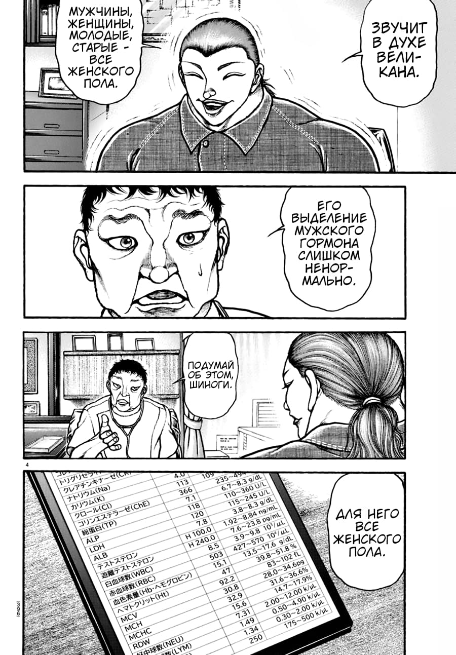 У меня мысля одна возникла. Вот у нас есть бибизяна, хрен пойми откуда, говорят, что даже демон. Мне достаточно понравился концепт, но такого в остальной части манги нету как-то. Да у нас есть гигантский слон и пара белых медведей, но ведь можно было бы развить момент с полуфентезийными(?) Мощными животными. Ясное дело, что не на каждом углу такое встречаться должно, но вот время от времени такие звери бы разбавили бои между людьми, а то сейчас максимально близкое к этому, что у нас есть, это бой с воображаемым богомолом. Это уход от реализма, чем манга не прямо таки блещет, но всё же у нас не медиевал фентези рпг, однако, раз существуют гигантские слоны, альтернативные древние люди, демонические обезьяны, фантазия превращающаяся в реальность и т.д. добавление буквально парочки таких видов погоды не сыграет я думаю, хотя сеттинг тогда уже нельзя будет назвать полностью современным. Хотя можно сделать финт ушами и сделать гмо-животинок. Вот какие-нибудь тигры из берсерка, например, норм бы зашли и Доппо было бы кого по шее треснуть. Ну или даже не каких-то выдуманных животных, а просто там анаконду гигантскую какую-нибудь с полноценным боем, а не закадровым убийством.