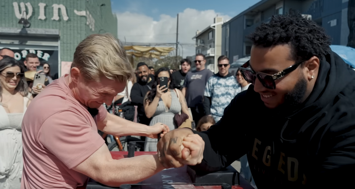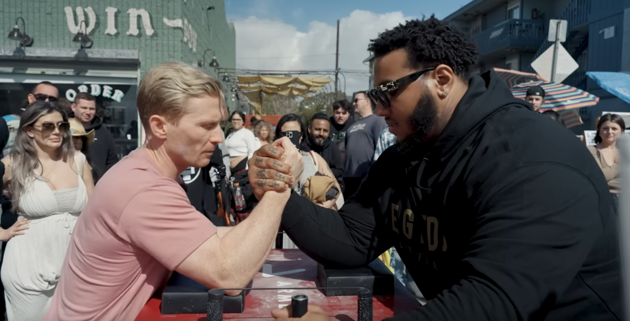 >>2093006 Хуйню придумал, про-армрестлера он уделал поднимая локоть и наваливаясь всем весом, если бы это было реальное соревнование а не тупо аттракцион для прохожих ему бы по башке надавали и дисквалифицировали. А от калолаза ничего другого и не ожидалось, их физуху часто переоценивают.