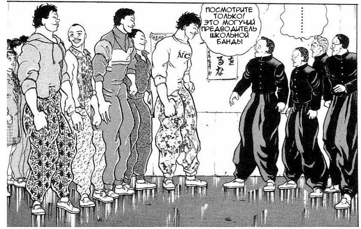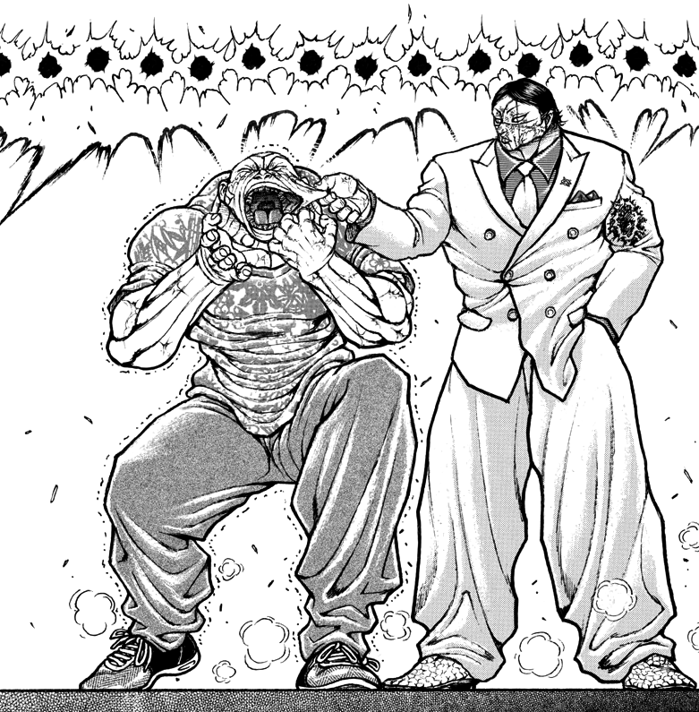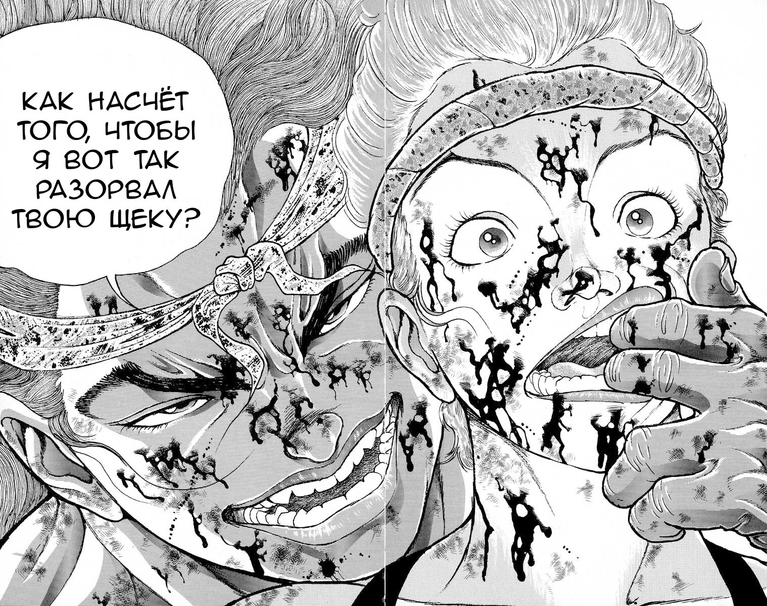 Да манга просто шикарна при чем почти каждая панелька такая Не понимаю как баки можно смотреть в том виде в котором он есть, ведь это манга про бои в первую очередь, и рисовка итагаки тут никак не заменима