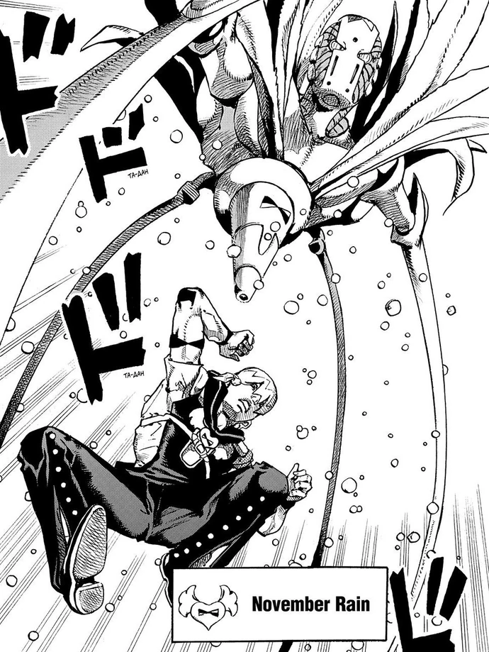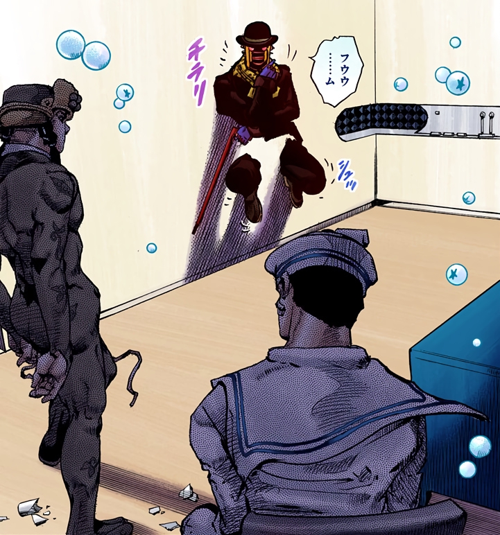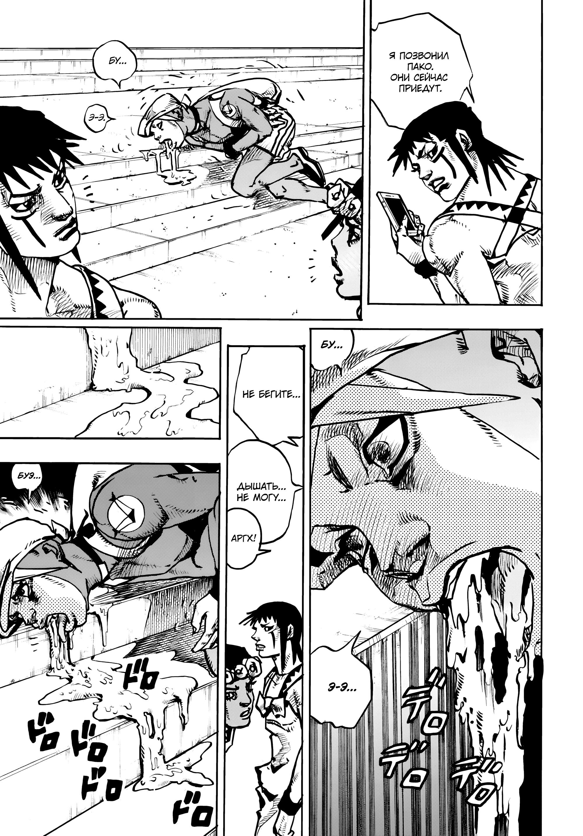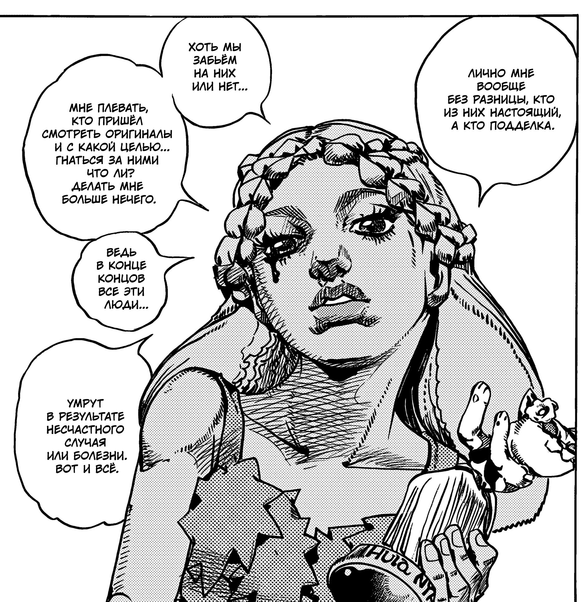 12 глава вышла, и всем похуй. Обсуждаем? Кто такой, ебать его в сраку, Чармингмэн? Нахуя нам показали эту слезливую историю про брата и очередной набульк про жестокость полиции? Лавовые трубки и лава это макгаффин типа локакаки и Видящих Стен из восьмёрки, Араки ударился в самоповтор?