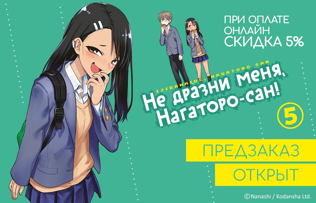 Дорогие друзья, мы с хорошими новостями для вас. Из типографии в наше издательство поступил долгожданный пятый том ромком манги «Не дразни меня, Нагаторо-сан!».