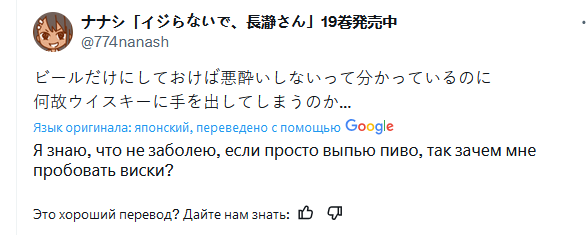 Нагаторо один из немногих вроде бы живых фандомов, но ощущение, что на японском рынке она бибу сосёт и потому тайтл душат. Хреновый мультик, который не спешат продолжать и задушеная сериализация манги
