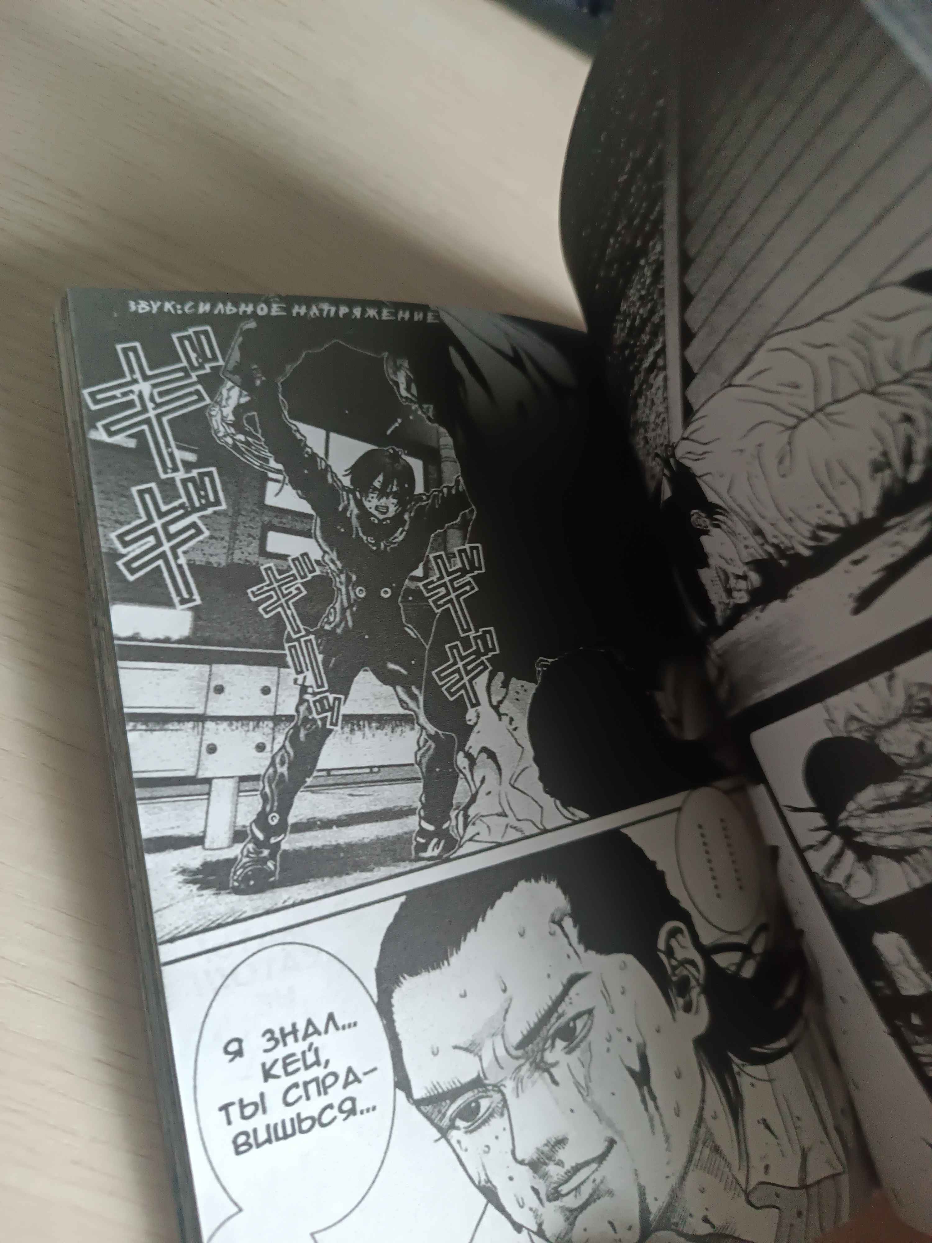 Влюбился в Gantz после этого кадра ещё лет 15+ назад... Только перевод был более угарный, там было написано что то вроде "Блядь....... Это пиздец!!!!!!", не смог найти.... С нынешним переводом уже не так интересно. Помню ахуй когда Кея вампир зарубил, и типо его последние мысли в квадратных облачках... было мощно. Ну и арки когда Кей превозмогает в соло тащили, вот это лев, миссия с пришельцами после смерти Като и последующий приход пришельца в школу ну это прям оч круто поставлено было, и как Кей его разъебал юзая костюм в школе. Какие-то вайбы человека-паука 18+ в целом были. Потом как Таэ нюхала его писю через трусишки тхихихи...(до сих пор не понял схуяли она попала в гантз и её можно было воскресить). Вообще всё было читабельно вплоть до вторжения гигантских пришельцев, при этом начало на земле ещё было интересно, прям эпик начался. Там ещё Ниши одноклашей разъебал бляяяя японский жесткач... Но чето какой-то пук будто в итоге. Но это великое произведение, ещё и пояснения автора в конце первых глав, как он юзал 3д для фонов. Как он помню сам писал что задал случайно тренд в хентайных мангах на двигающиеся соски, с помощью мазков линий от соска или типо того...