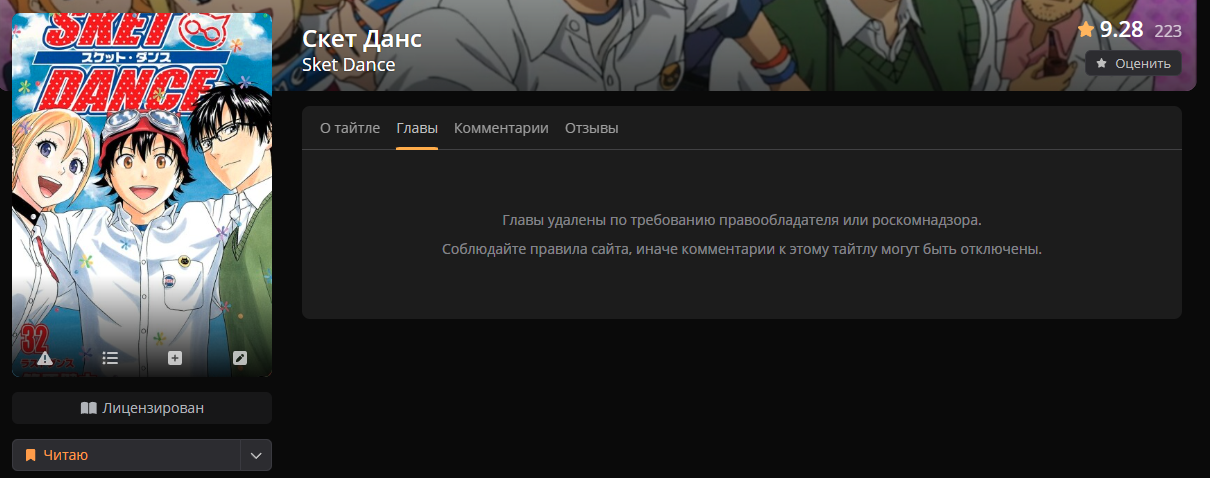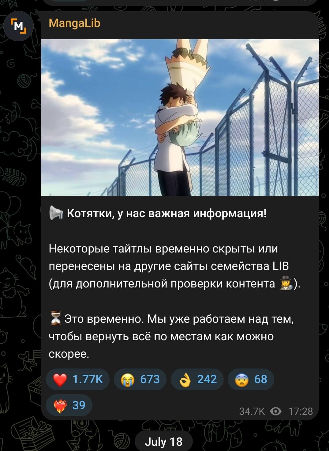 РИДМАНГА — ВСЁ! Сайт переходит на подписку из-за РКН, так как многие тайтлы блокируются РКН, тем самым адмистрации приходится скрывать спорный контент. Но админстрация нашла выход из этой пагубной ситуации, сделать некий "закрытый клуб" по подписке куда будут перенесены все удаленные и скрытые тайтлы, заплати 300 рублей, и получи доступ ко всем скрытым тайтлам. Решение вроде неплохое, но вы же помните, к чему приводят подобные решения? Взять самые известные и так же самые деньговыжымающие манга сайты по типу той же реманги, мангалиба и прочих. Начиналось всё абсолютно так же. Сотрудничество с РКН ни к чему хорошему не приводит, и это тоже доказали те же самые реманга, и либ.