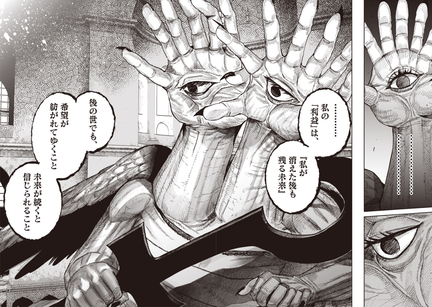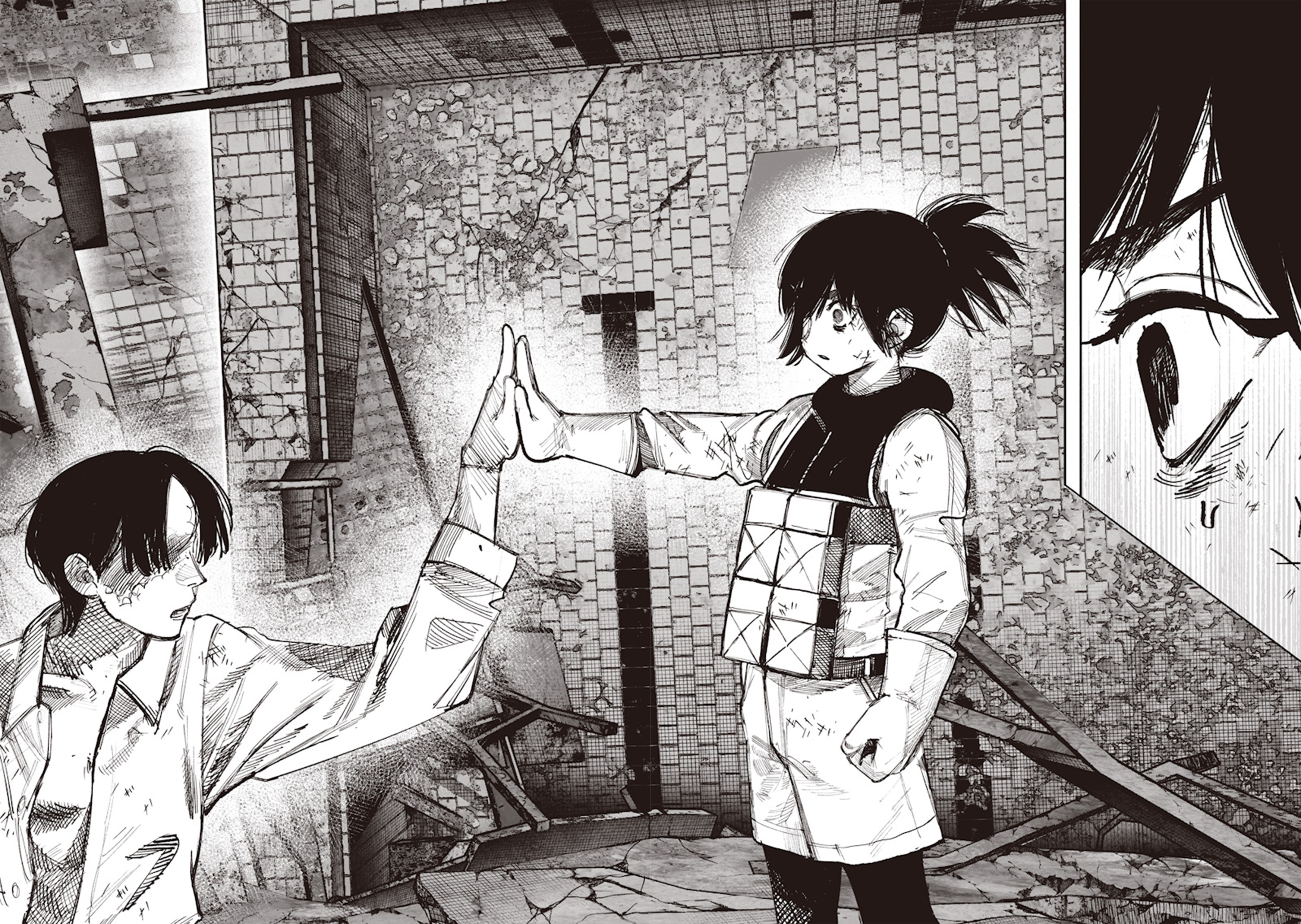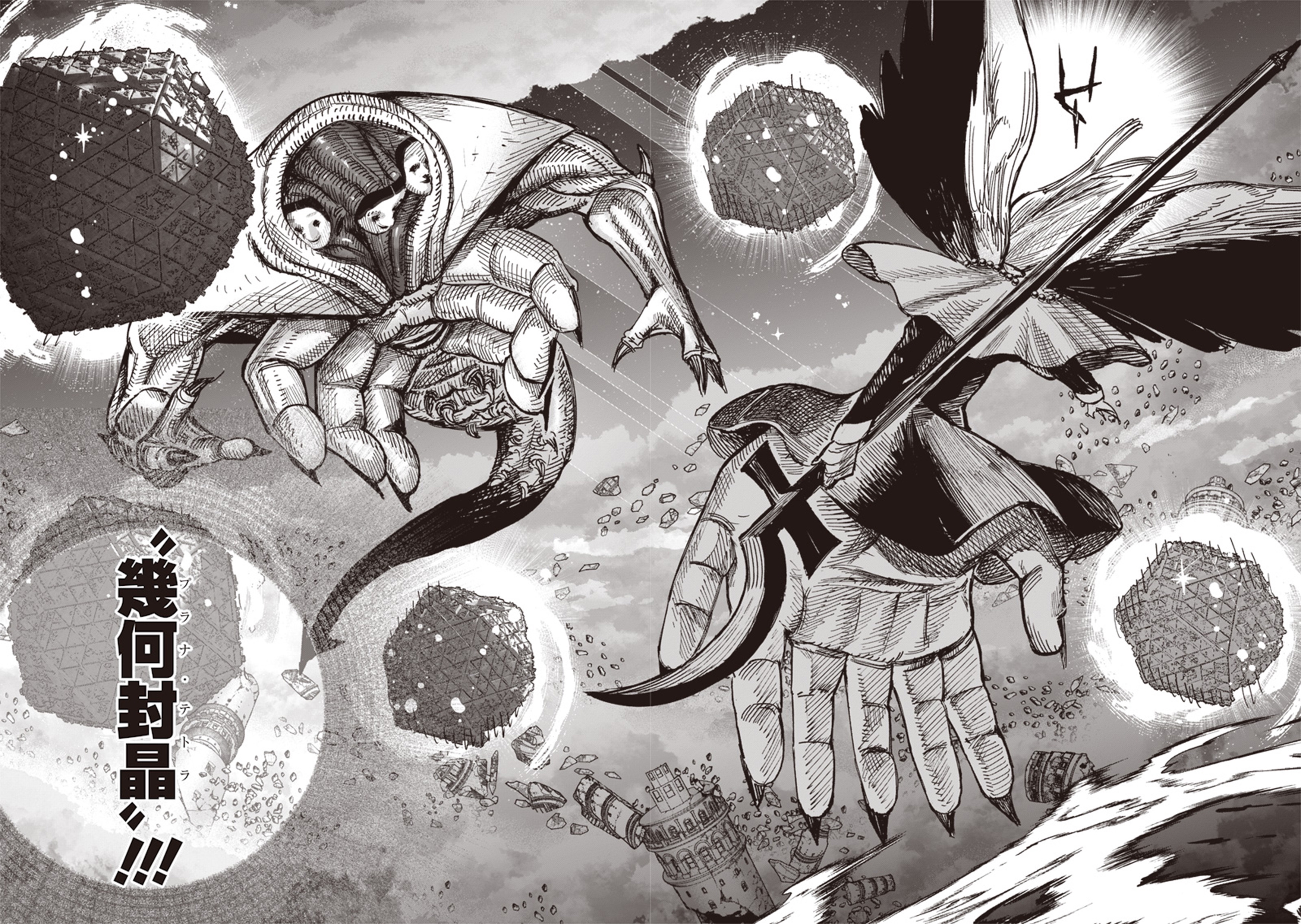 Я не завидую той студии, которая будет когда-нибудь адаптировать эту мангу, лел. Попробуйте-ка перенести новую главу в анимированный формат. Тут нужен кто-то типа Science Saru.