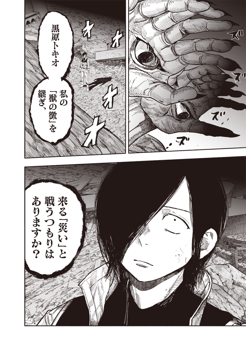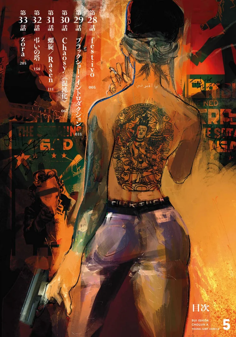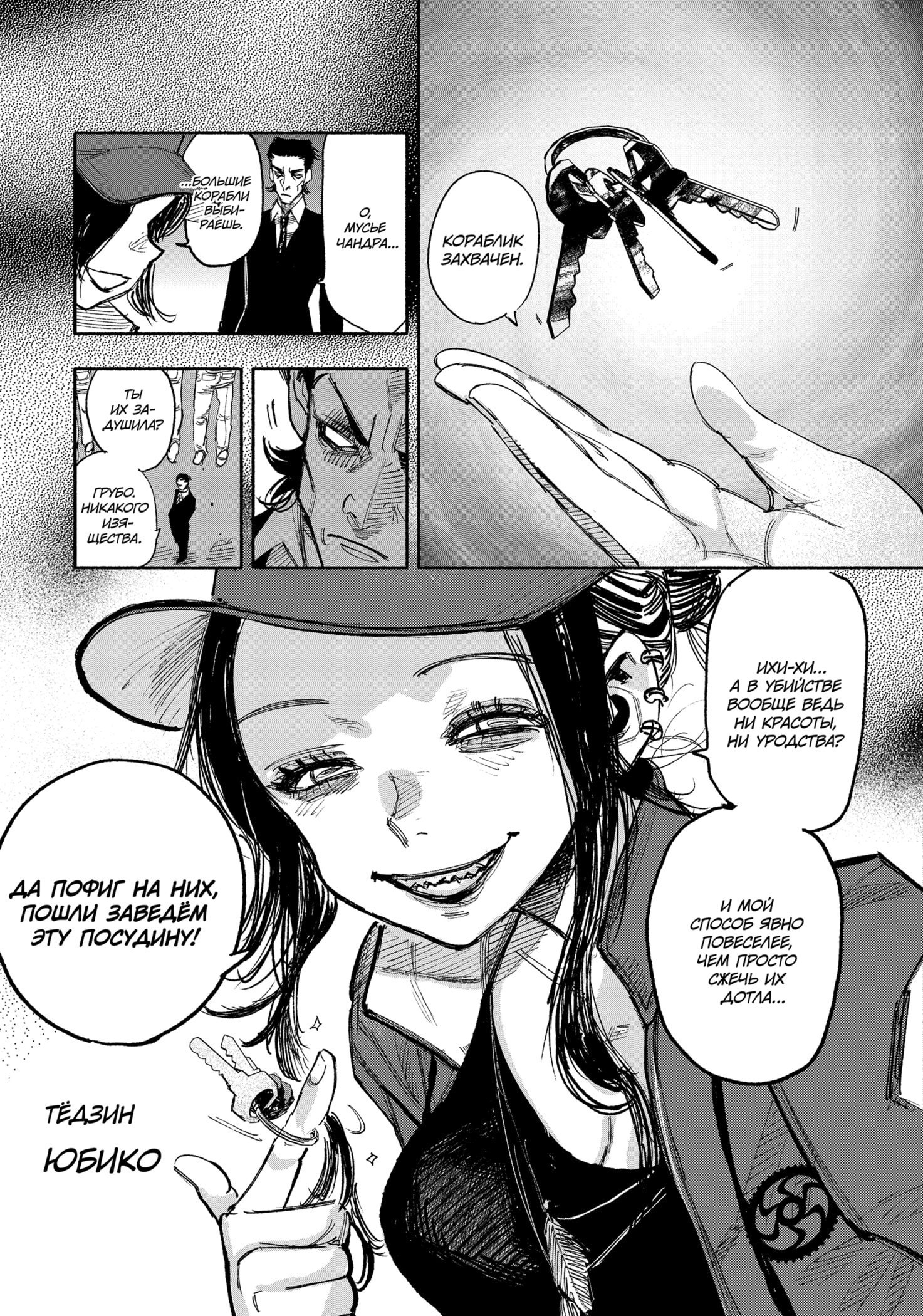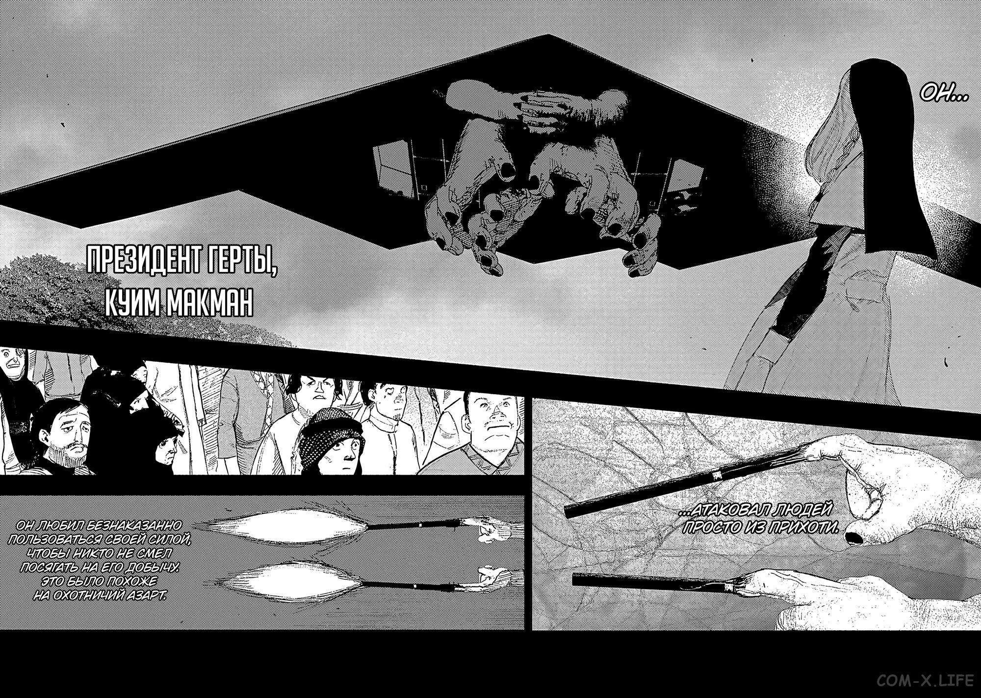 И естественно все не так просто. Батиста манипулирует пространством и временем, даже choujin slayer его реально не задел, он просто отмотал все назад. Эли пытается похитить Знак, но у нее тоже не получается (пока?), зато явно дается понять, что вместе с этим ей придется похитить и Нуэ. В конце главы Батиста засовывает Токио, Сору и Сандека в поле жуткой гравитации. Мне кажется, Эли в следующей главе таки сможет спиздить его силу и начнется реальное бедствие.