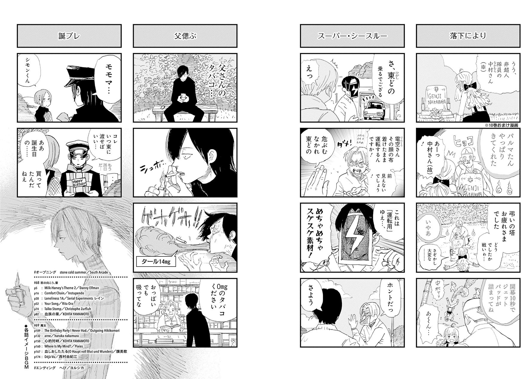 Значительно более комедийный тон по сравнению с Гулем, который делает историю ближе к Penisman. Иногда манга может сочетать комедию и трагедию буквально в одной главе, превращать комедийные моменты в брутальщину или наоборот. Но при этом я считаю, что сама история на десять голов выше Гуля. Видно, что он ее изначально продумывал и несколько лет расставлял заряженные ружья.